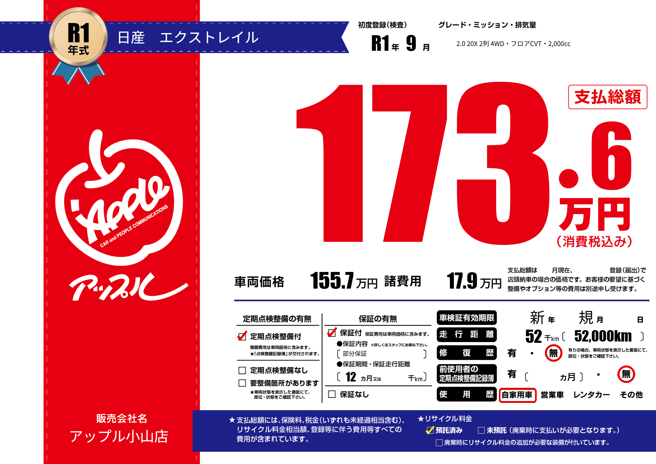 | 車名 | 日産 エクストレイル | グレード ミッション 排気量 |
