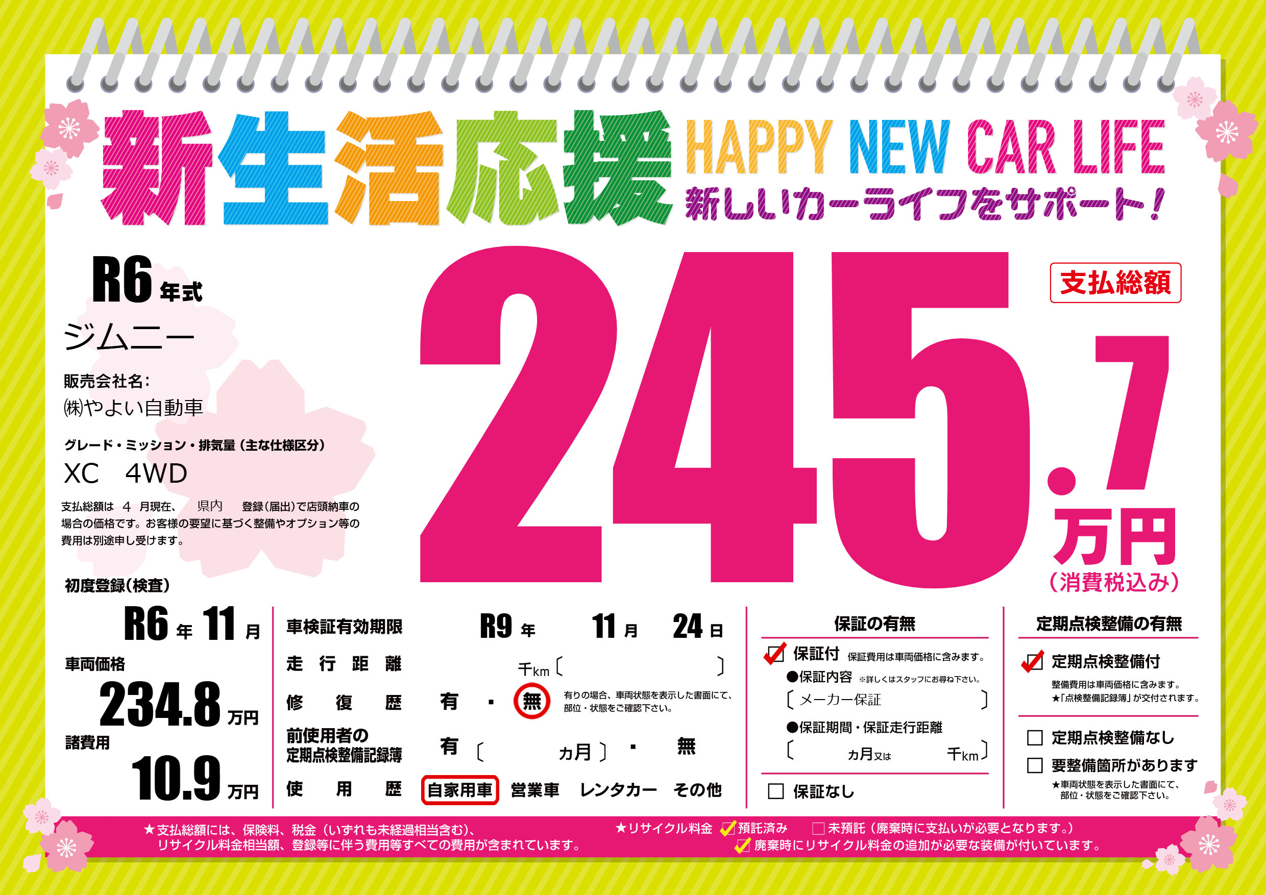 | 車名 | ジムニー | グレード ミッション 排気量 |