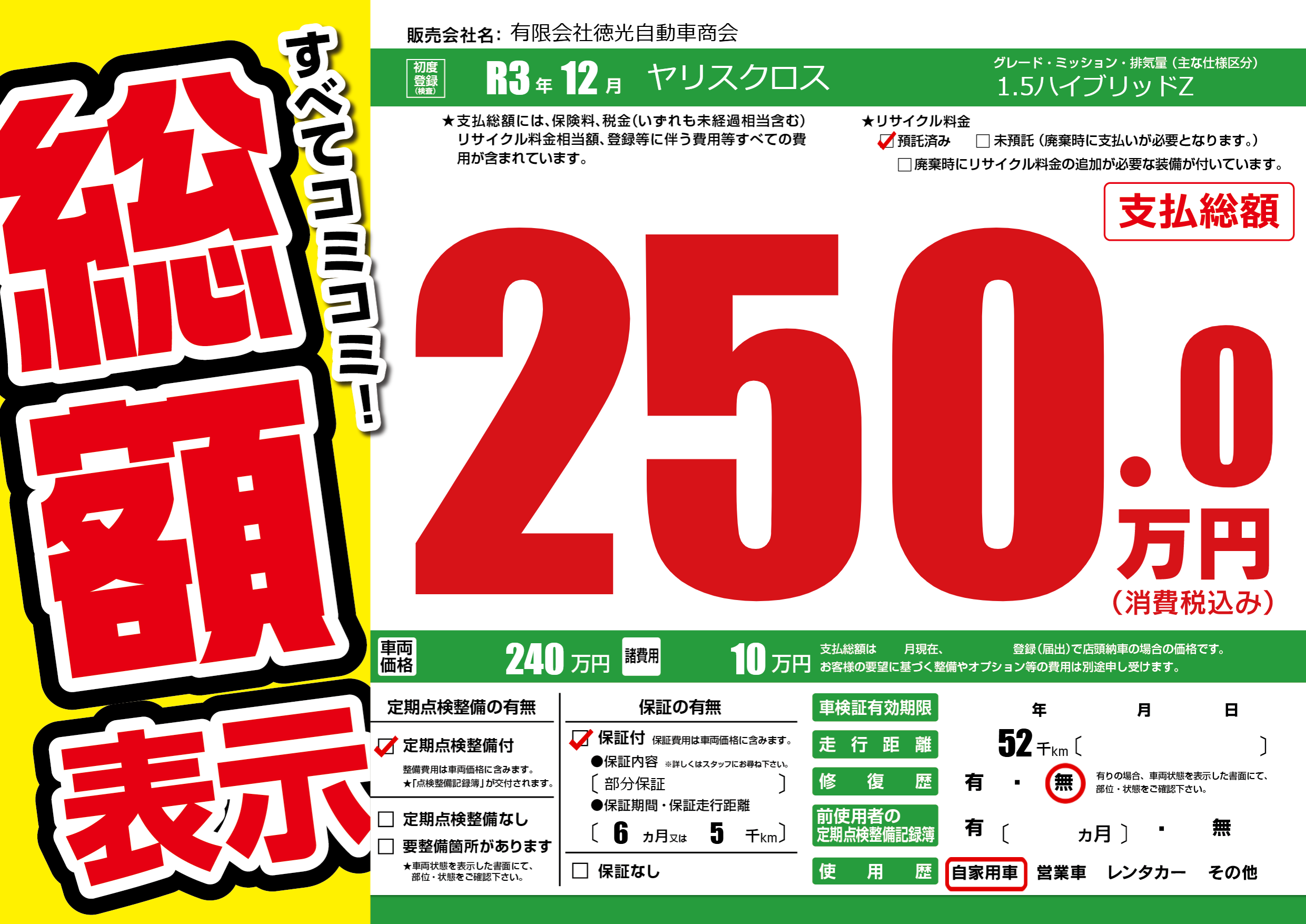 | 車名 | ヤリスクロス | グレード ミッション 排気量 |