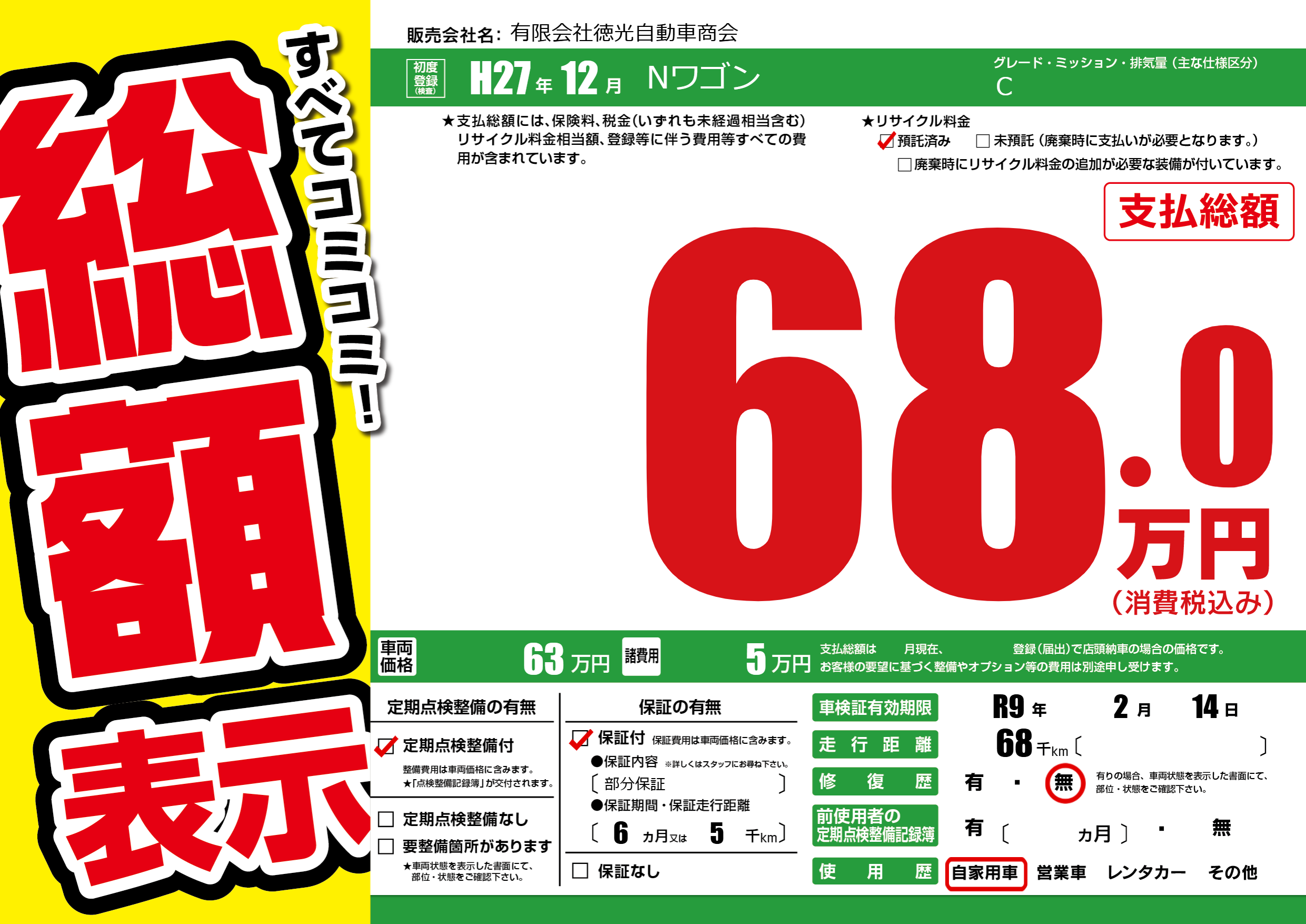 | 車名 | Nワゴン | グレード ミッション 排気量 |