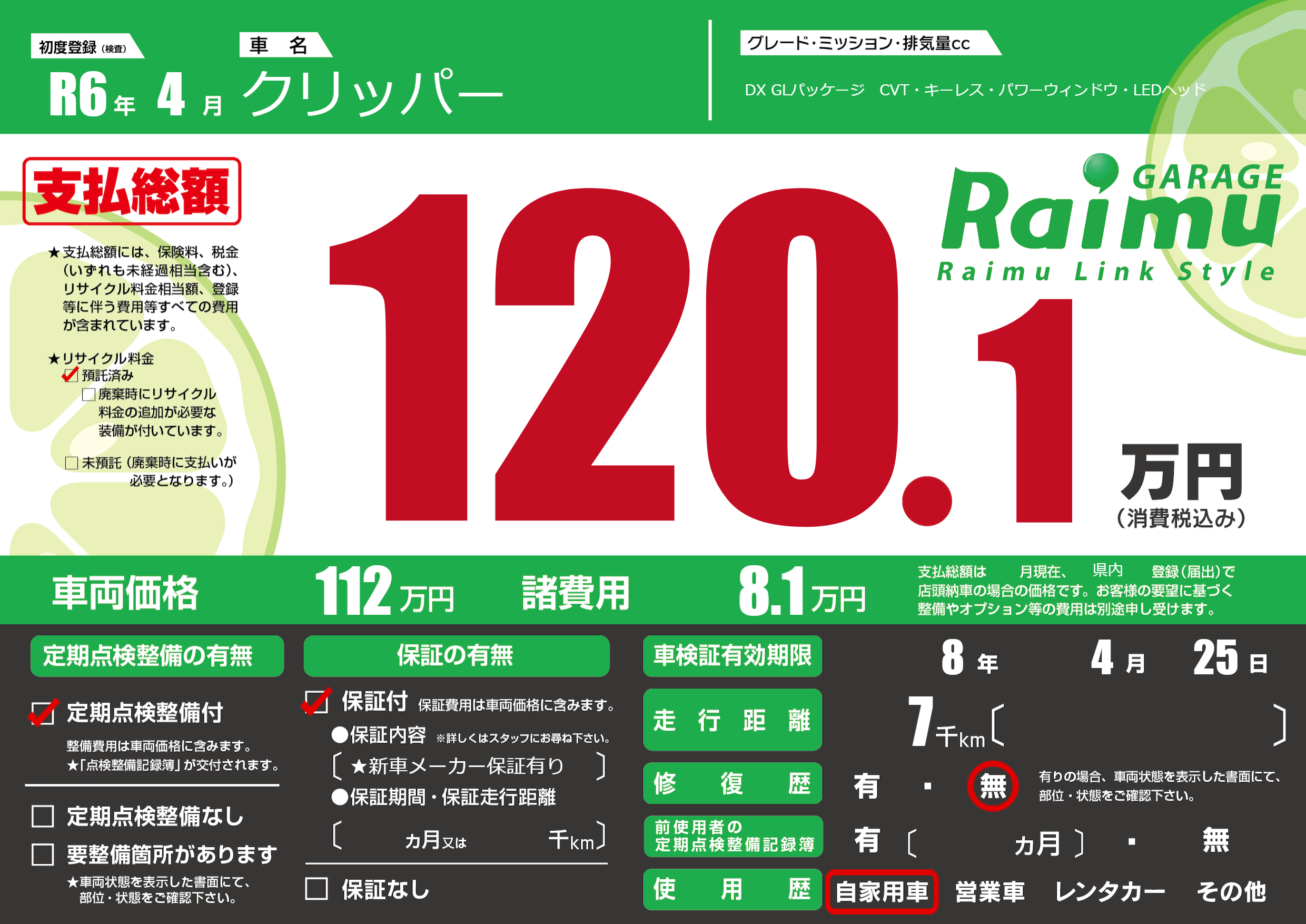 | 車名 | クリッパー | グレード ミッション 排気量 |