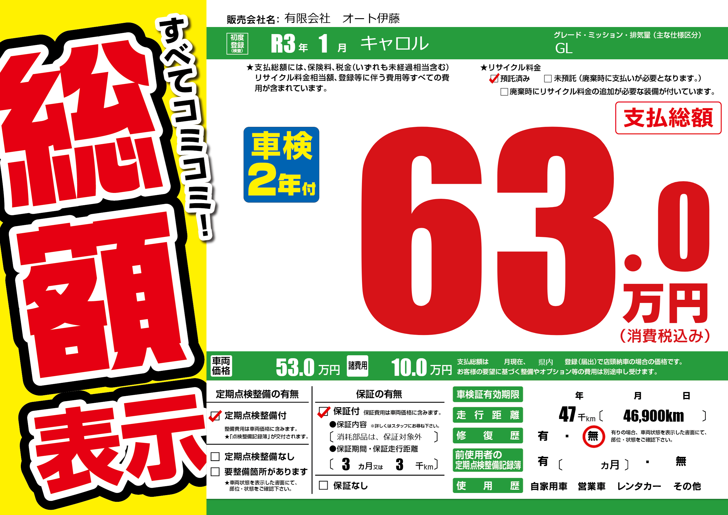 | 車名 | キャロル | グレード ミッション 排気量 |