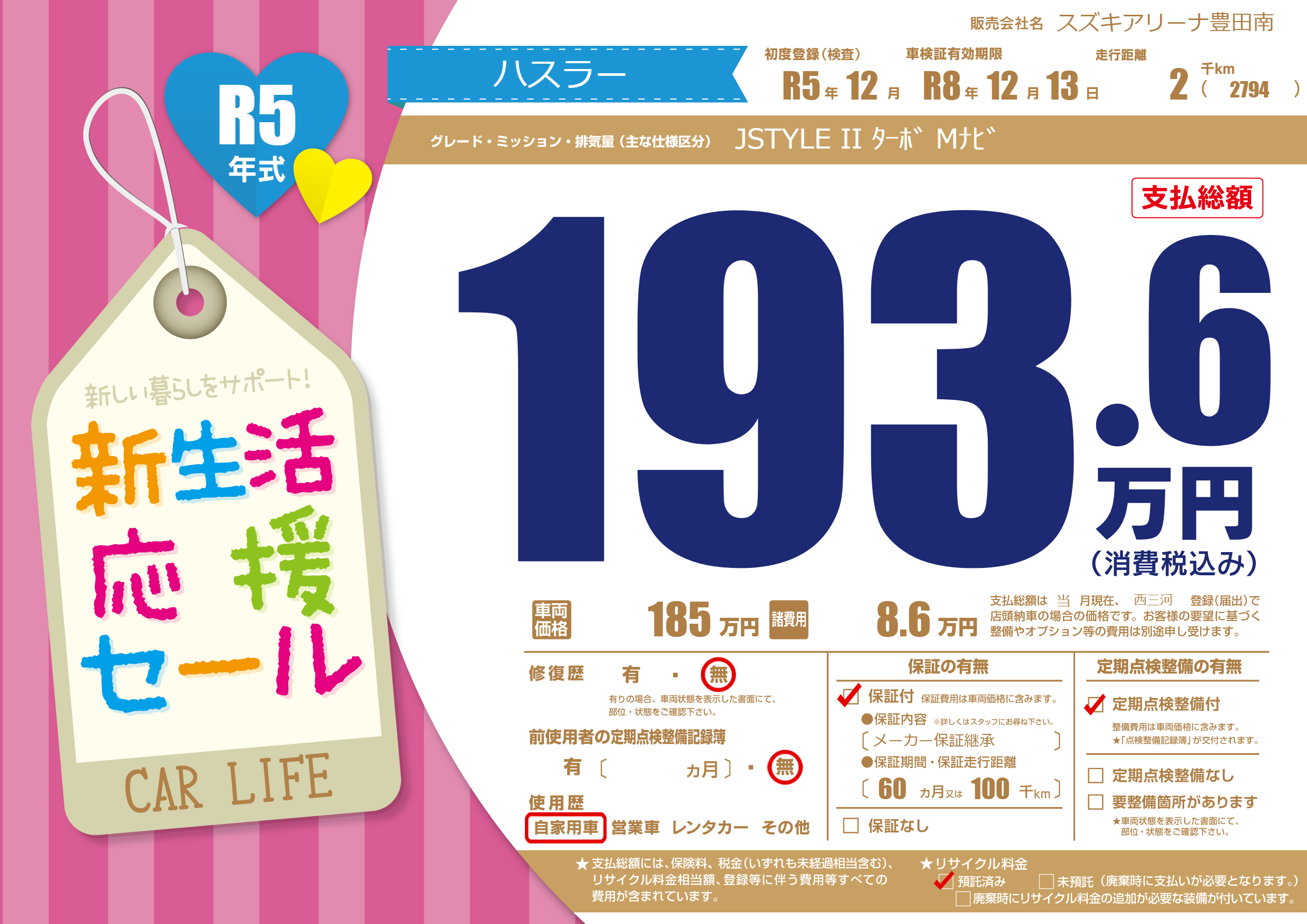 なし | 車検制限 | R8年12月13月 |