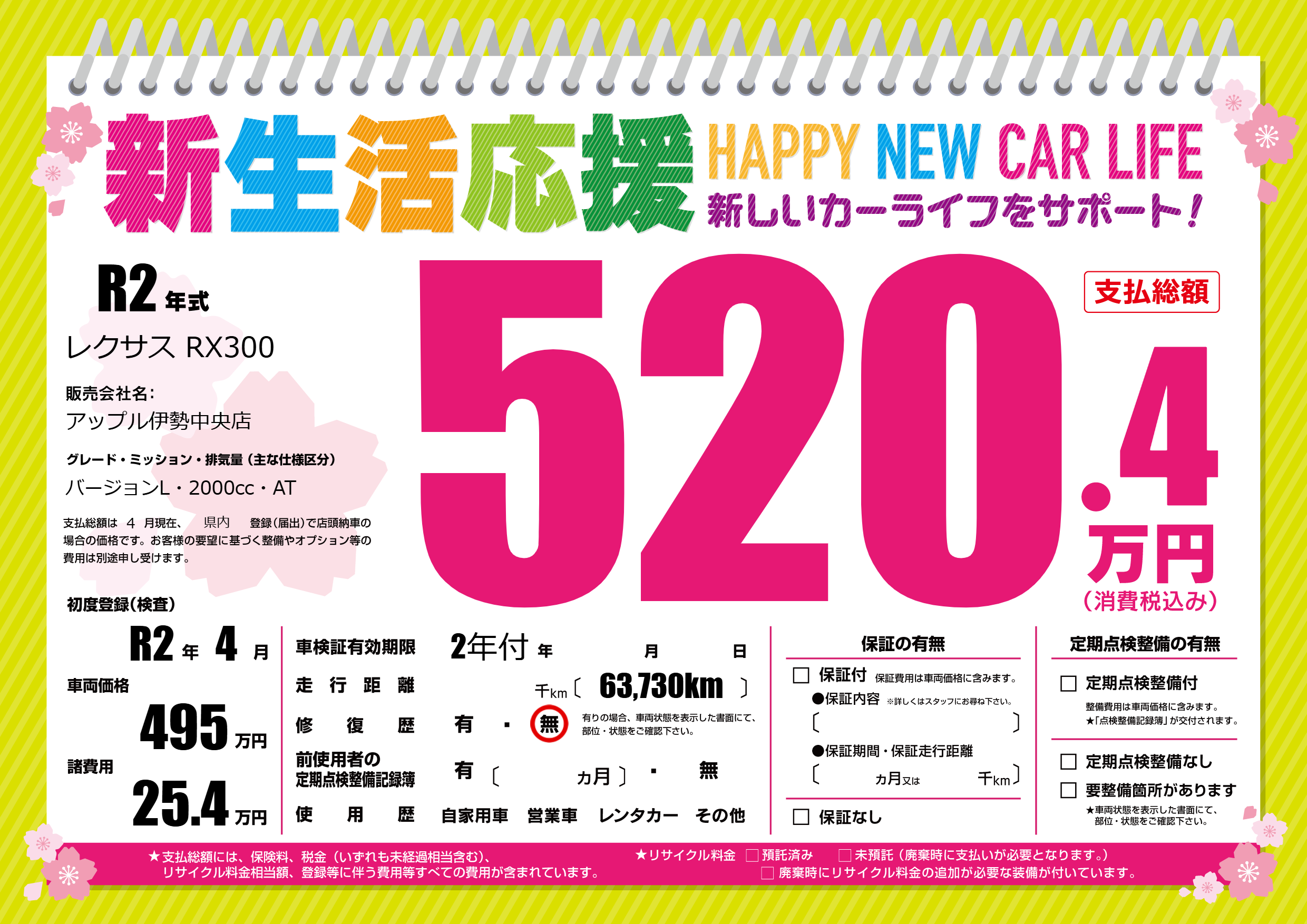 | 走行キロ | - | 初年度登録 | R2年4月 |