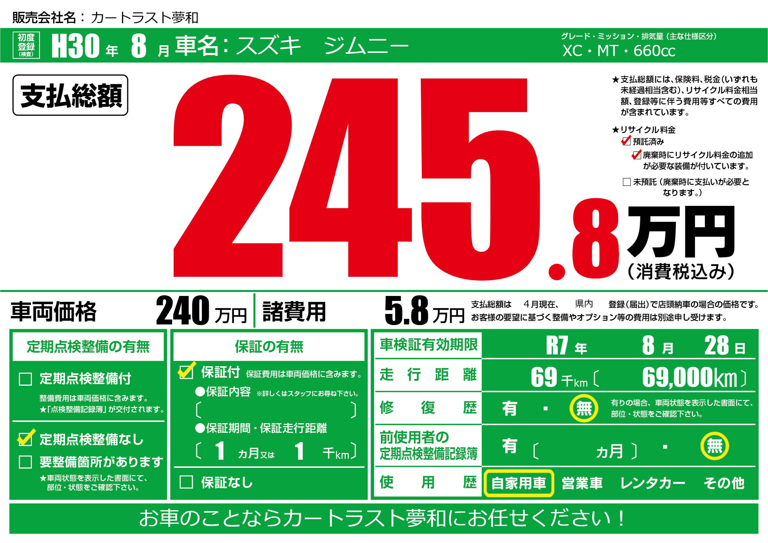 なし | 車検制限 | R7年8月28月 |