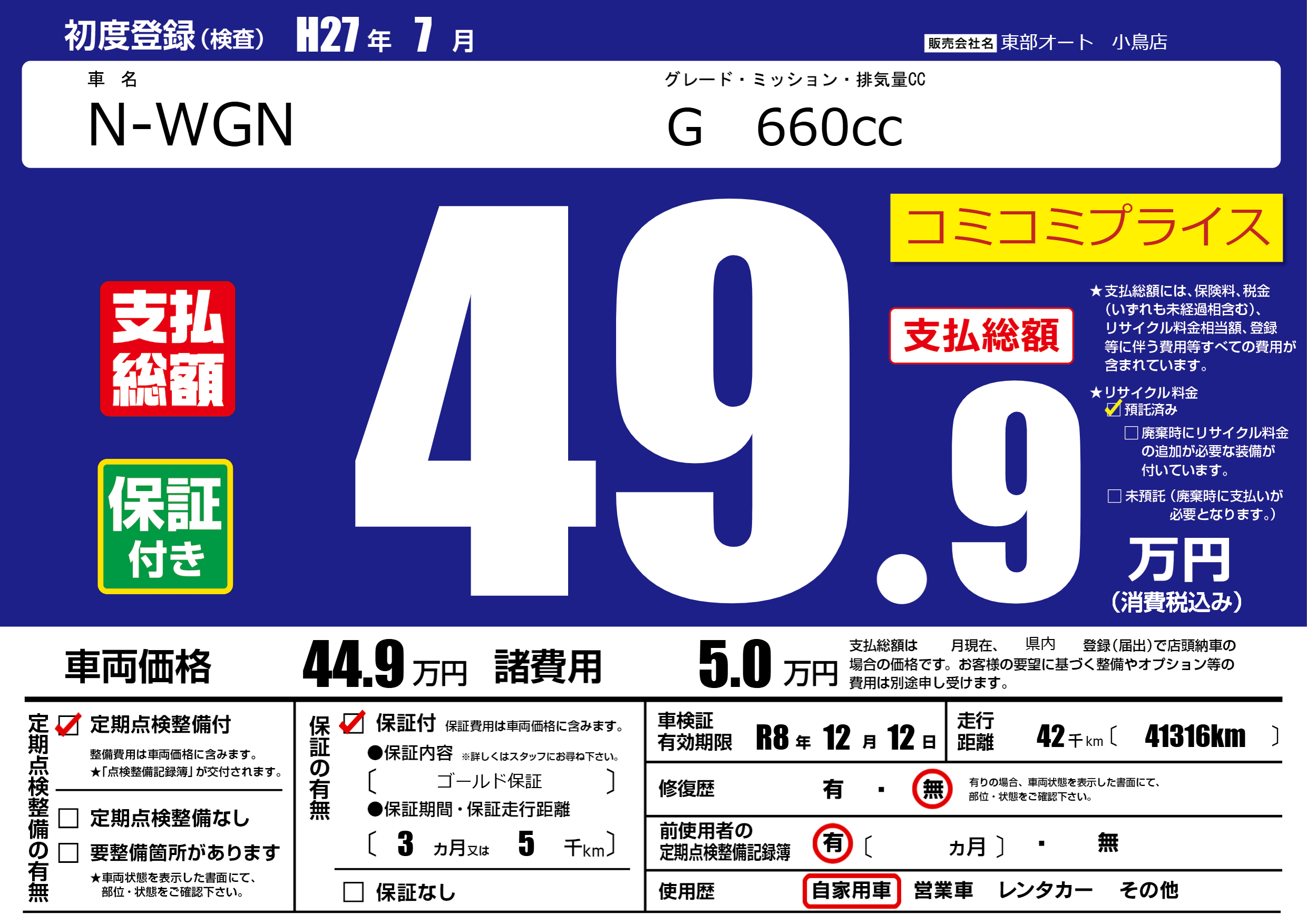 | 定期点検整備 | 定期点検整備あり | ||