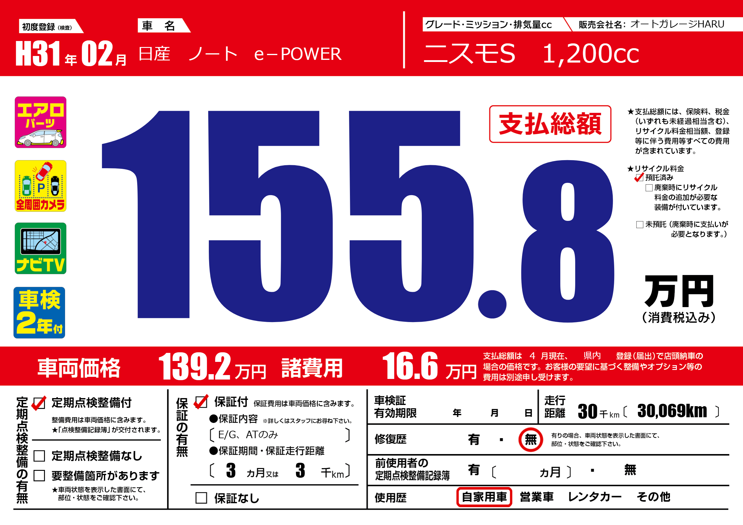 | 走行キロ | 3万km | ||