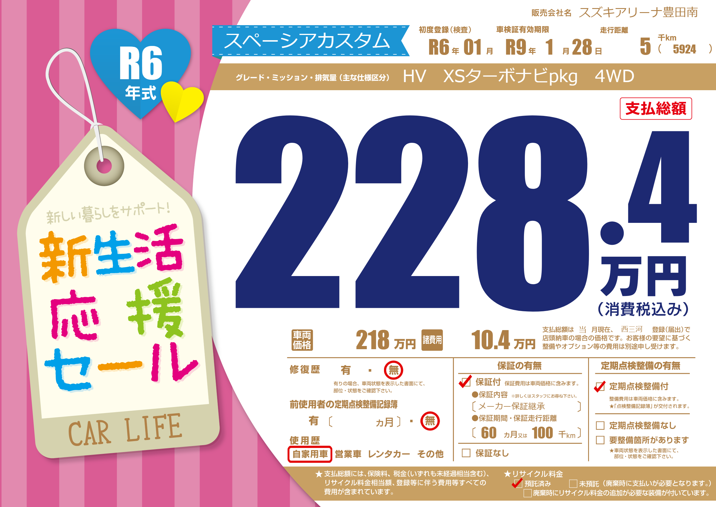 | 車名 | スペーシアカスタム | グレード ミッション 排気量 |