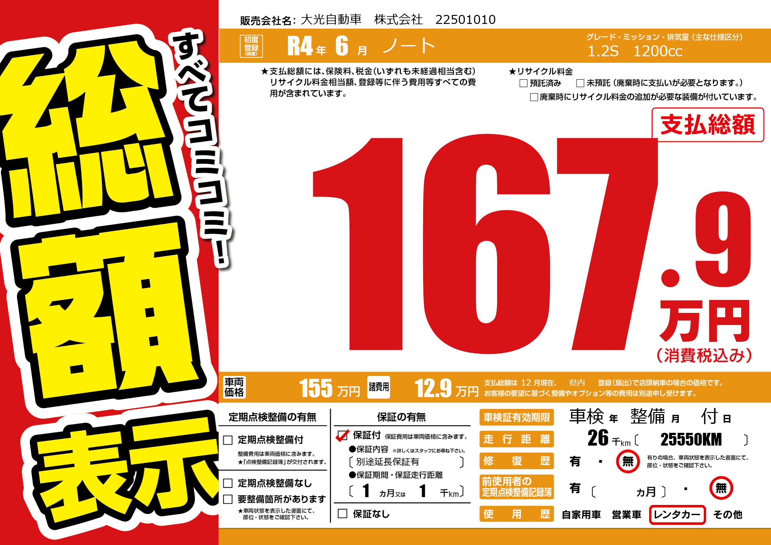 | 走行キロ | 2.6万km | 初年度登録 | R4年6月 |