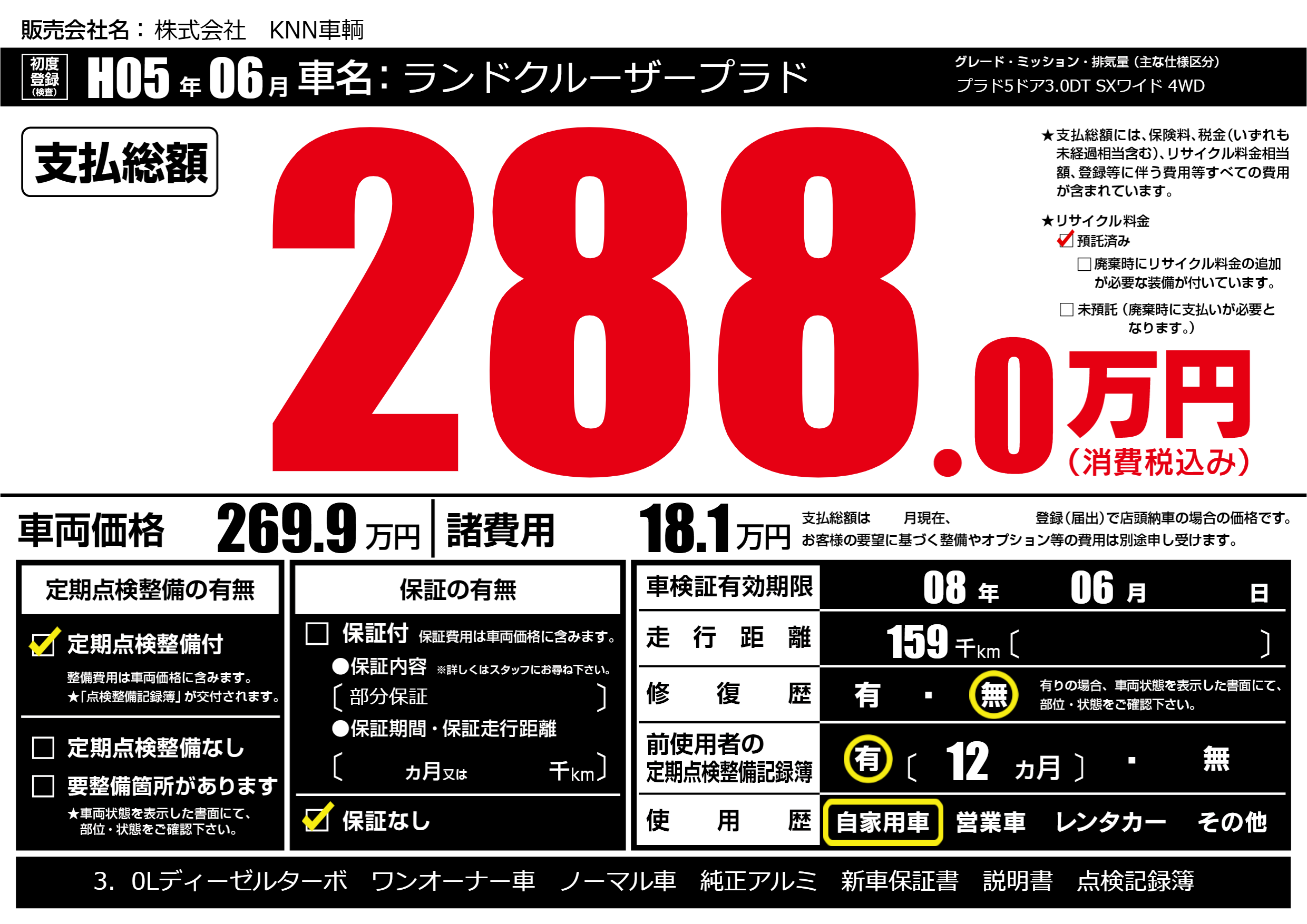 | 車名 | ランドクルーザープラド | グレード ミッション 排気量 |