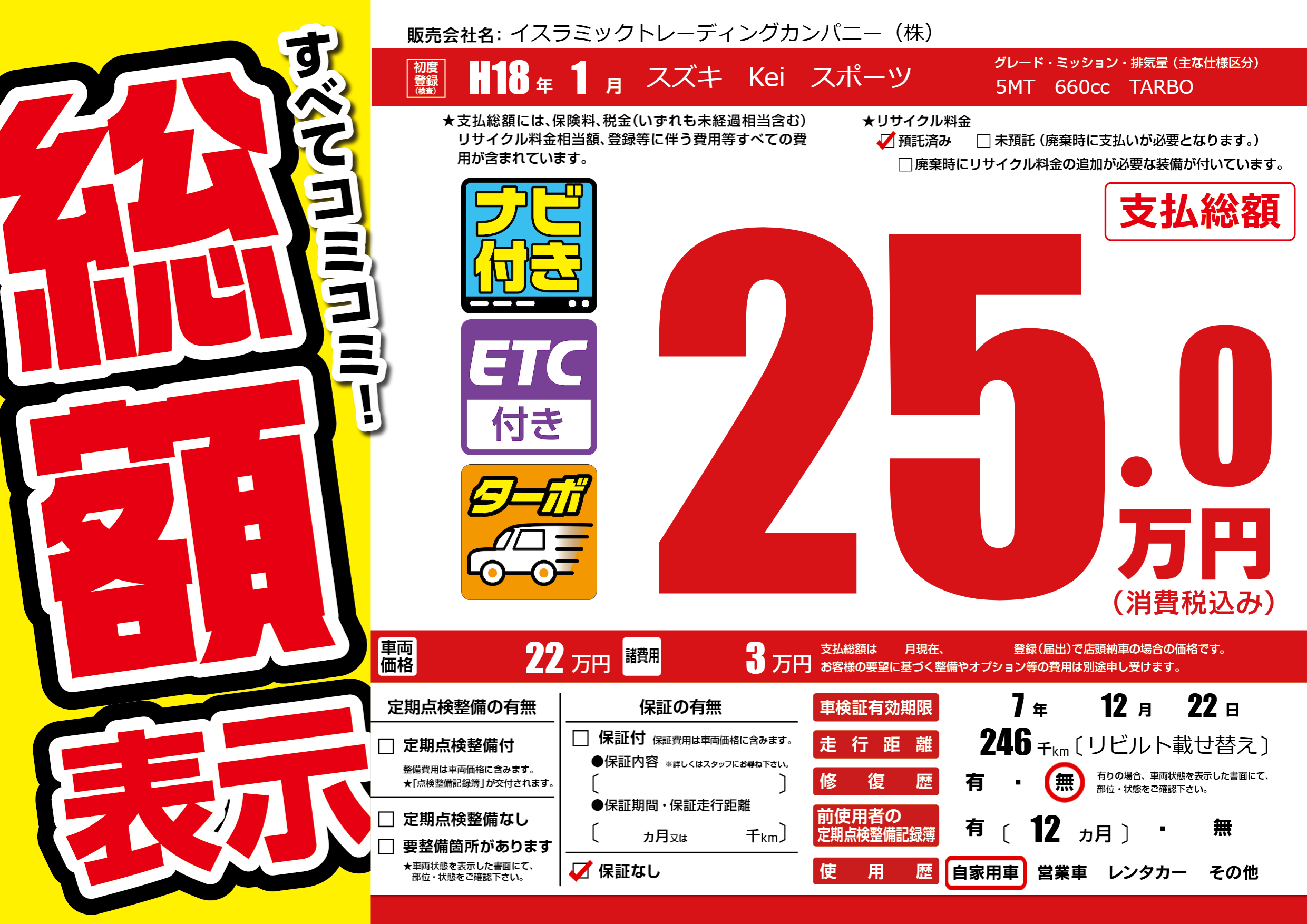 | 車検制限 | 7年 12月 22日 | ||