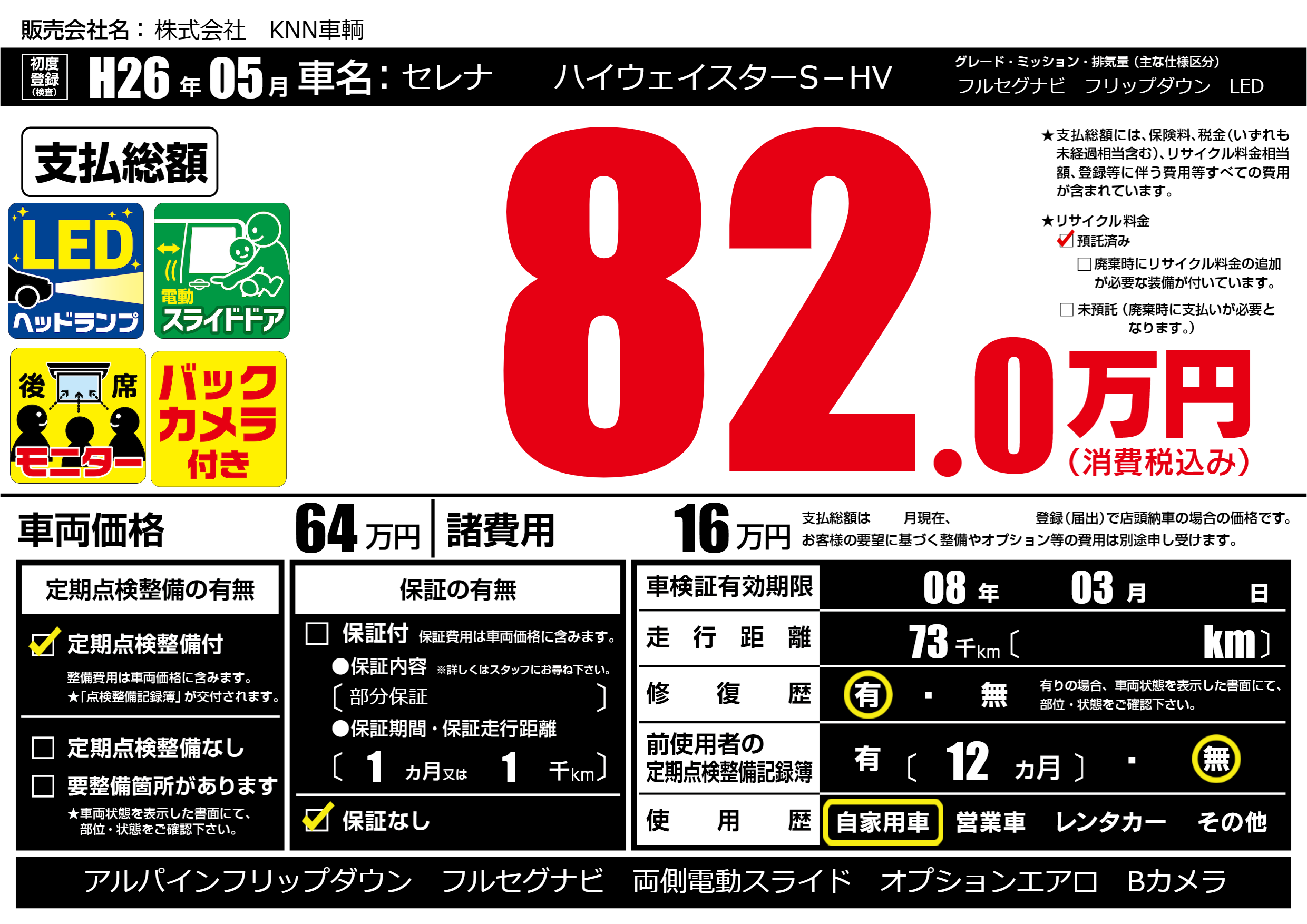 | 車名 | セレナ ハイウェイスターS-HV | グレード ミッション 排気量 |