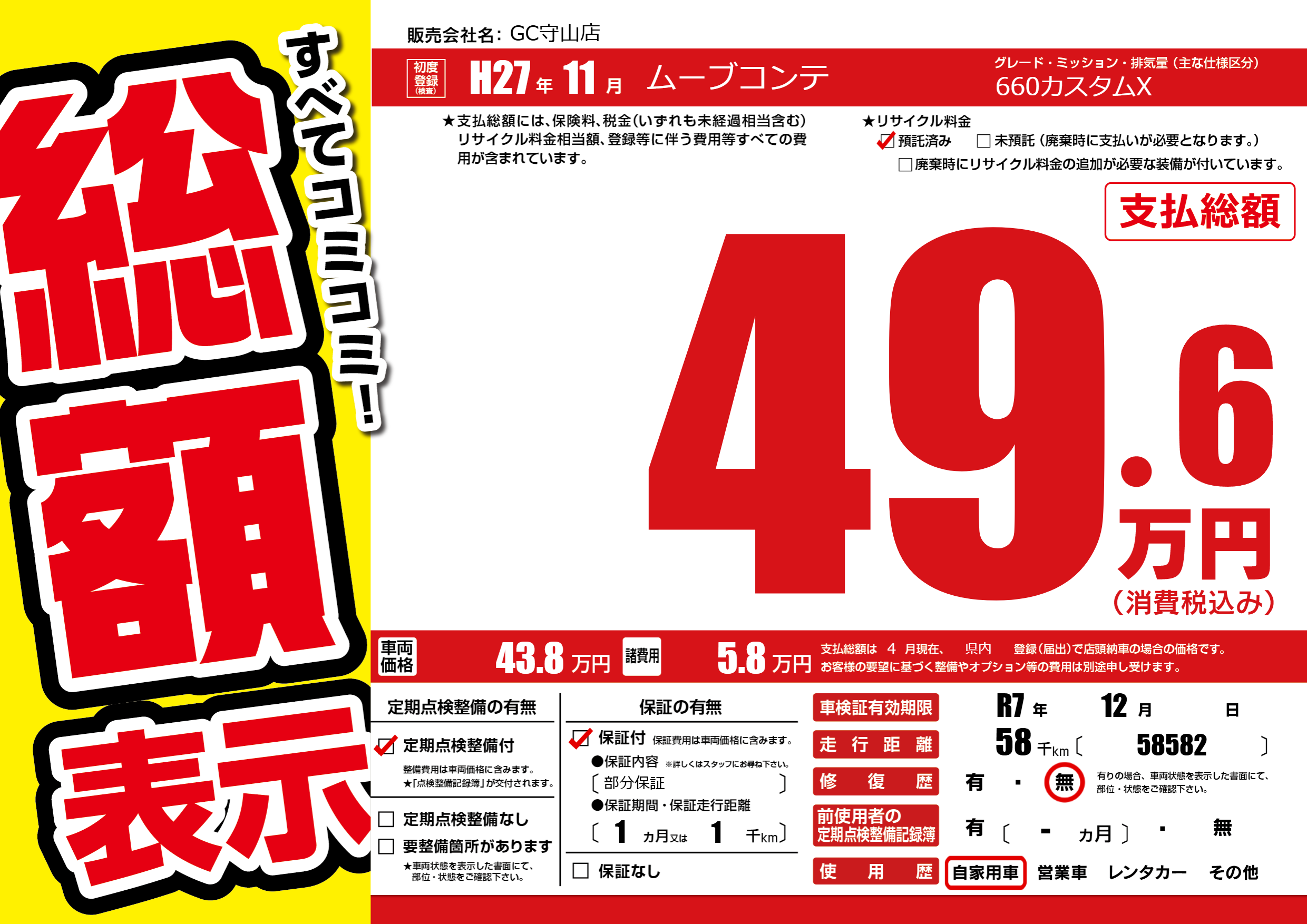 | 車検制限 | R7年 12月 - 日 | ||