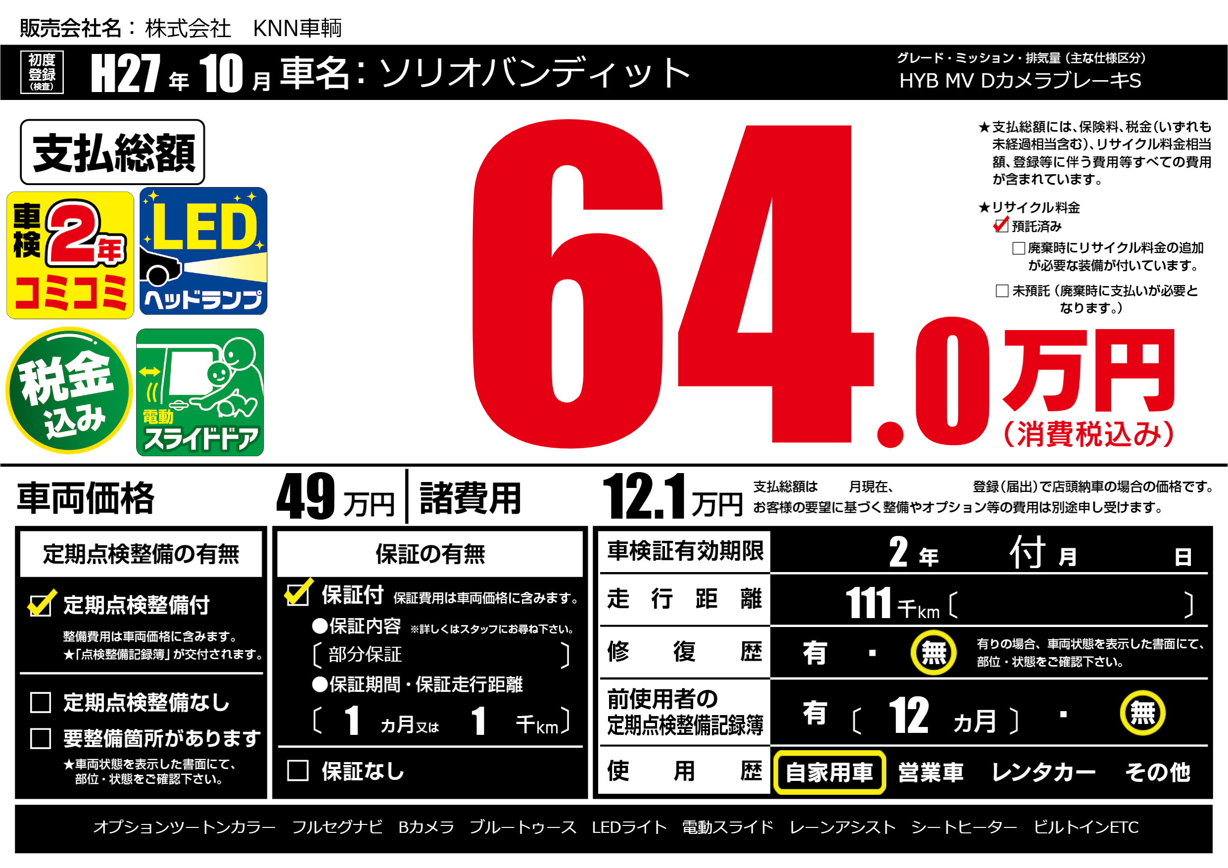 なし | 車検制限 | 2年付月---月 |