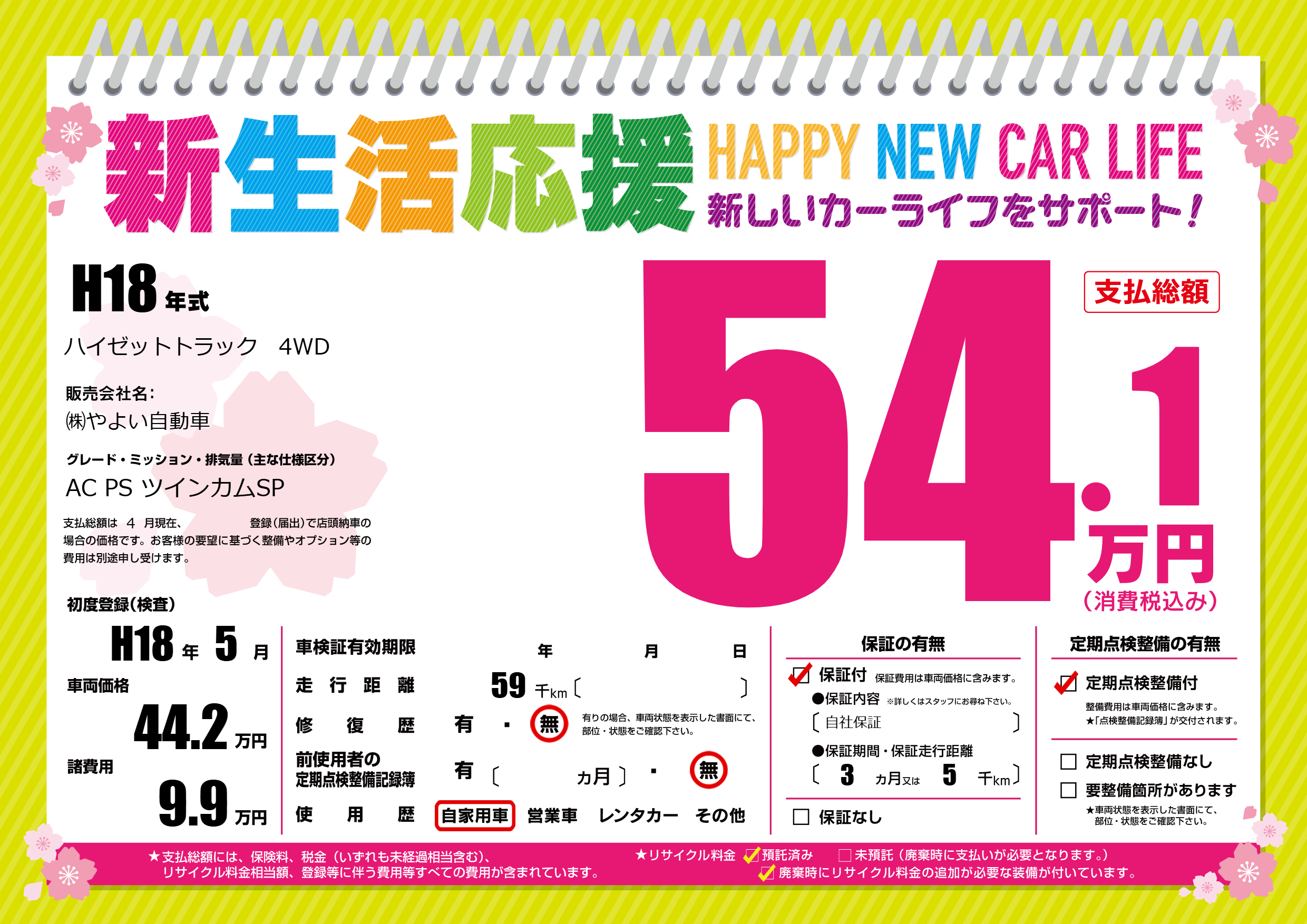 | 車名 | ハイゼットトラック 4WD | グレード ミッション 排気量 |