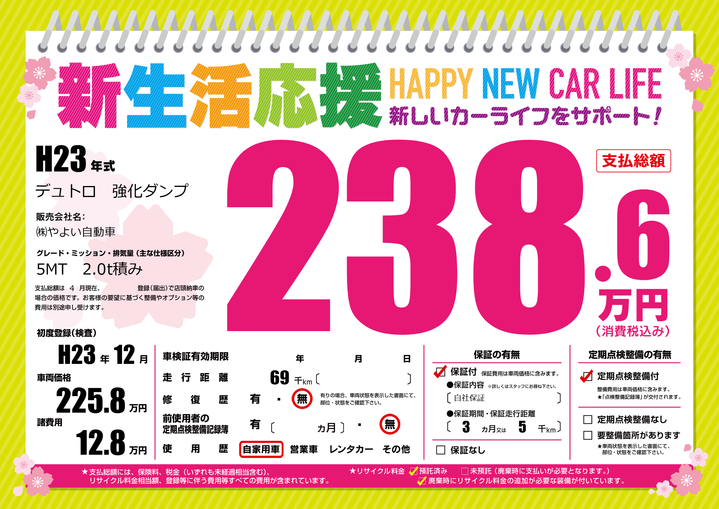 | 車名 | デュトロ 強化ダンプ | グレード ミッション 排気量 |