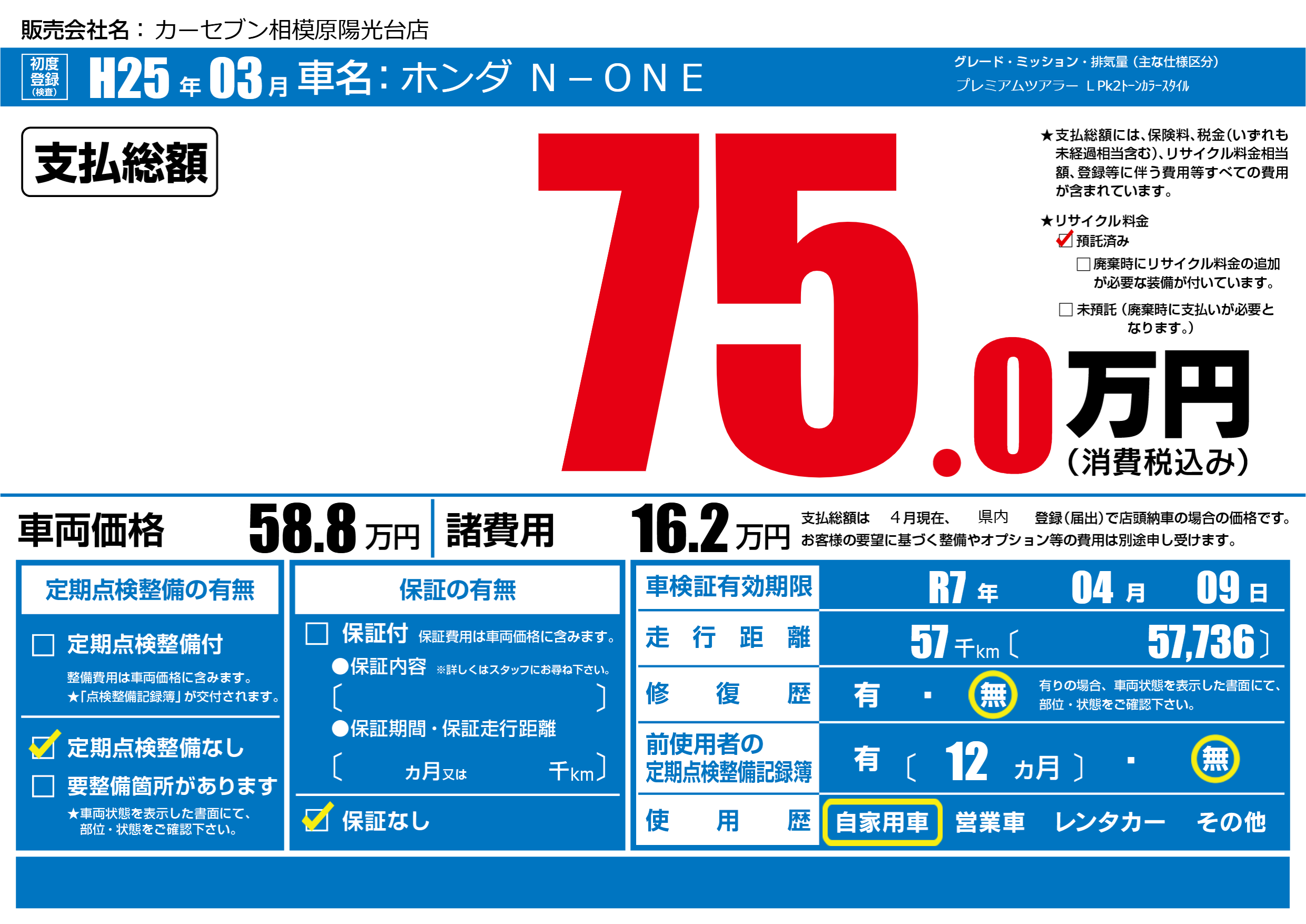 なし | 車検制限 | R7年04月09月 |