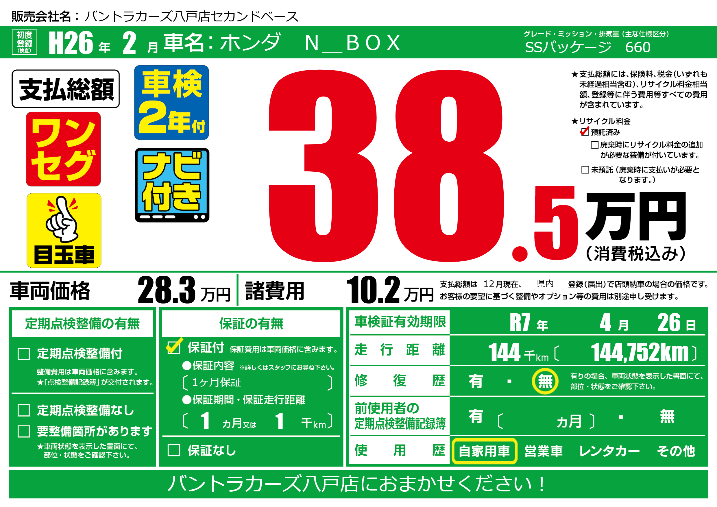 なし | 車検制限 | R7年4月26月 |