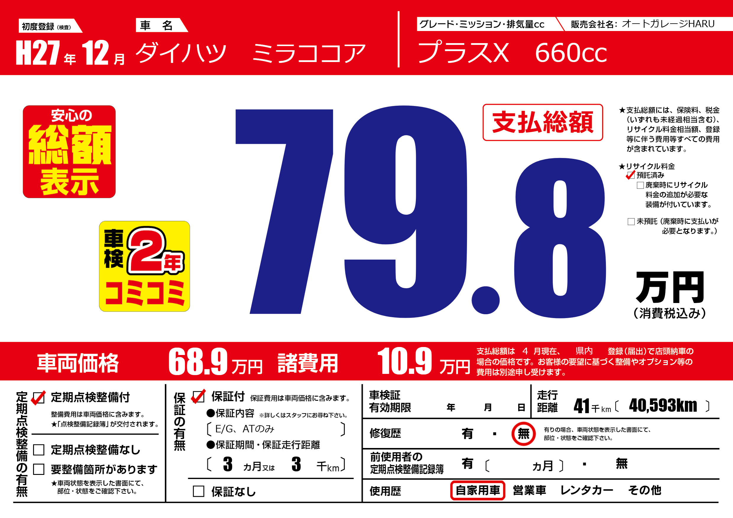 | 定期点検整備 | 定期点検整備あり | ||