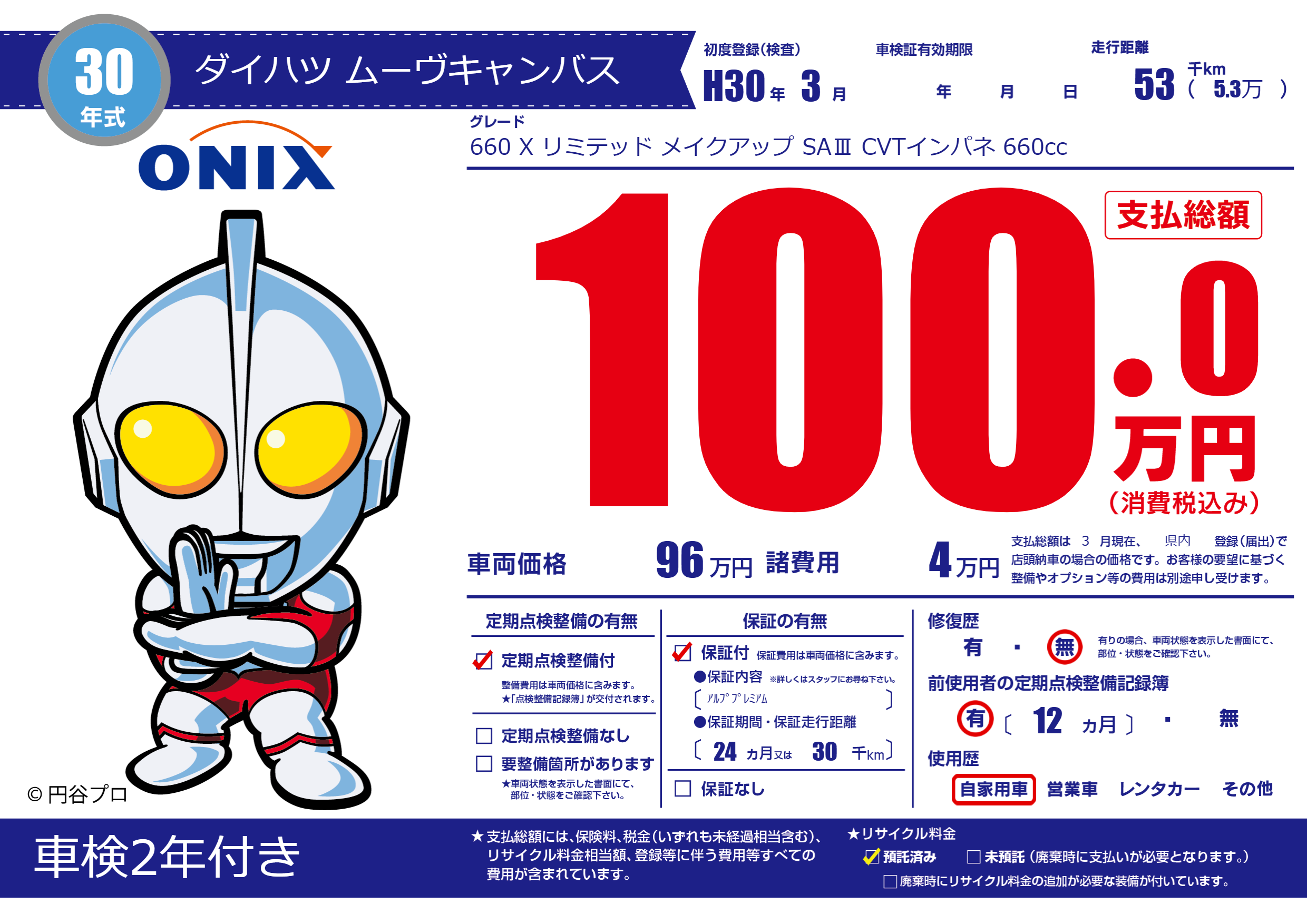 | 車名 | ダイハツ ムーヴキャンバス | グレード ミッション 排気量 |