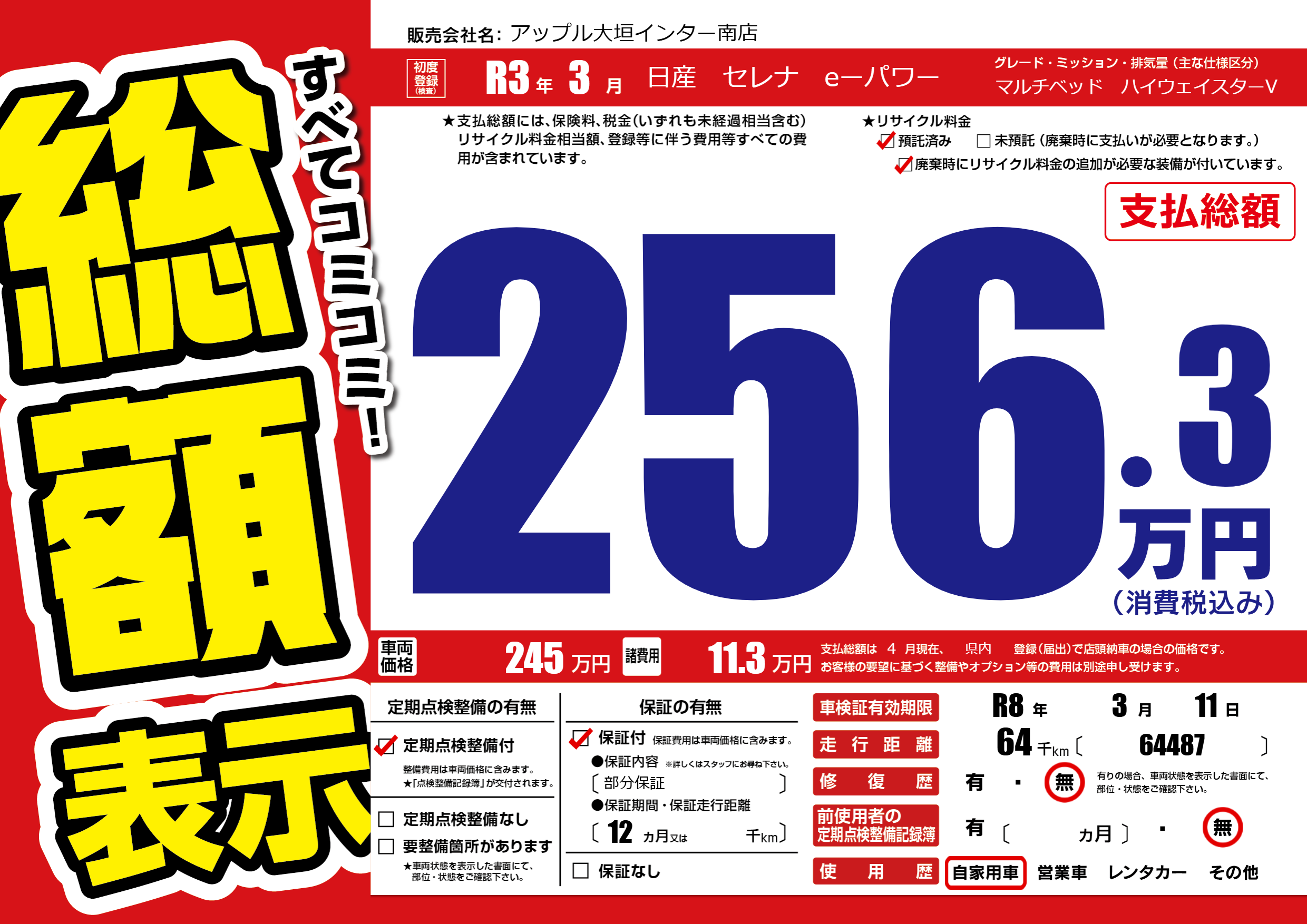 | 初年度登録 | R3年3月 | ||