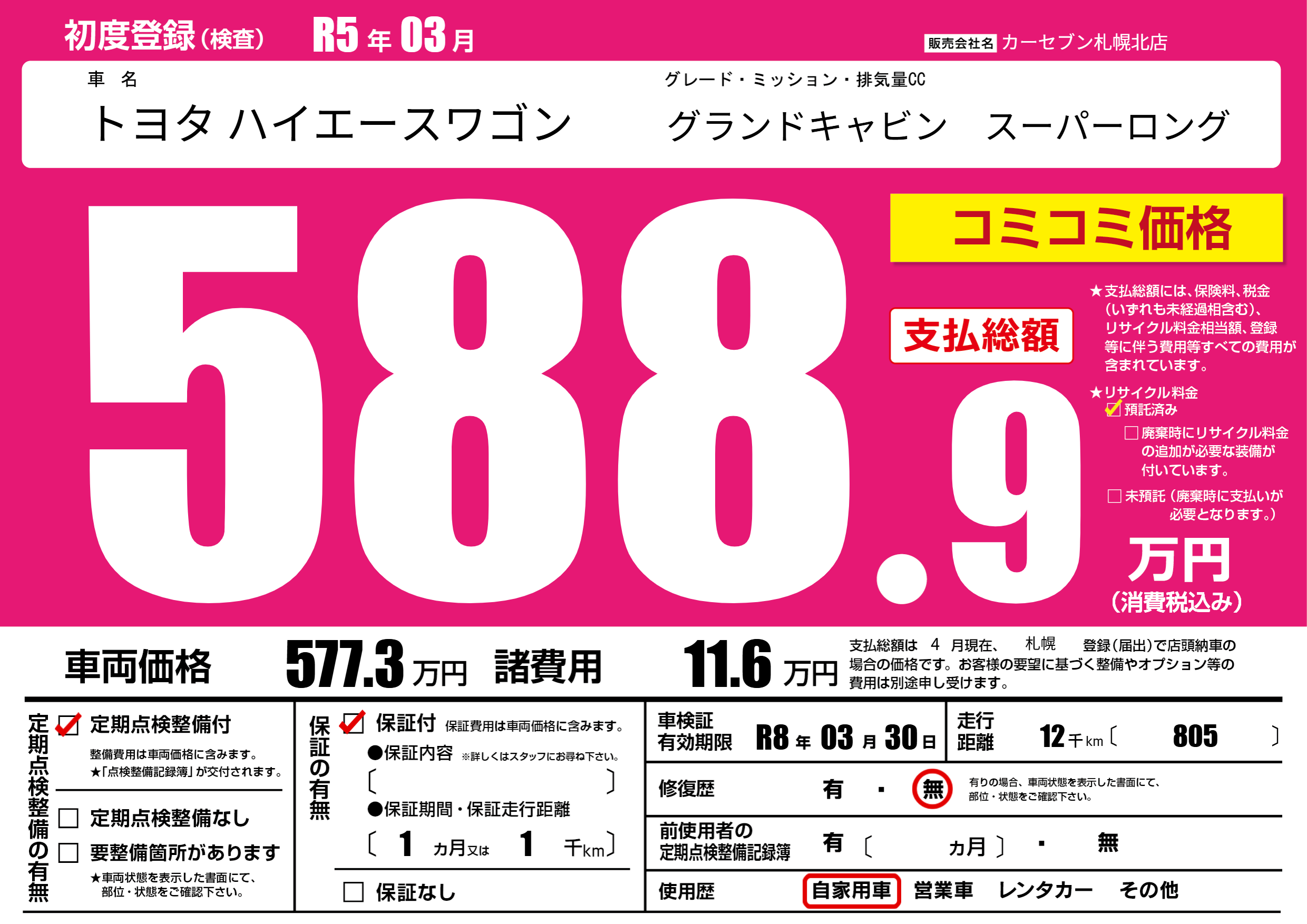 なし | 車検制限 | R8年03月30月 |