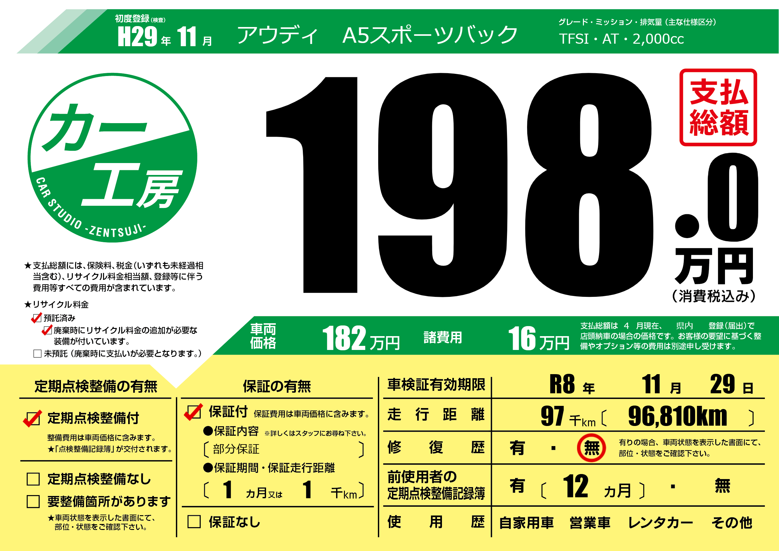 定期点検整備 | 定期点検整備あり |