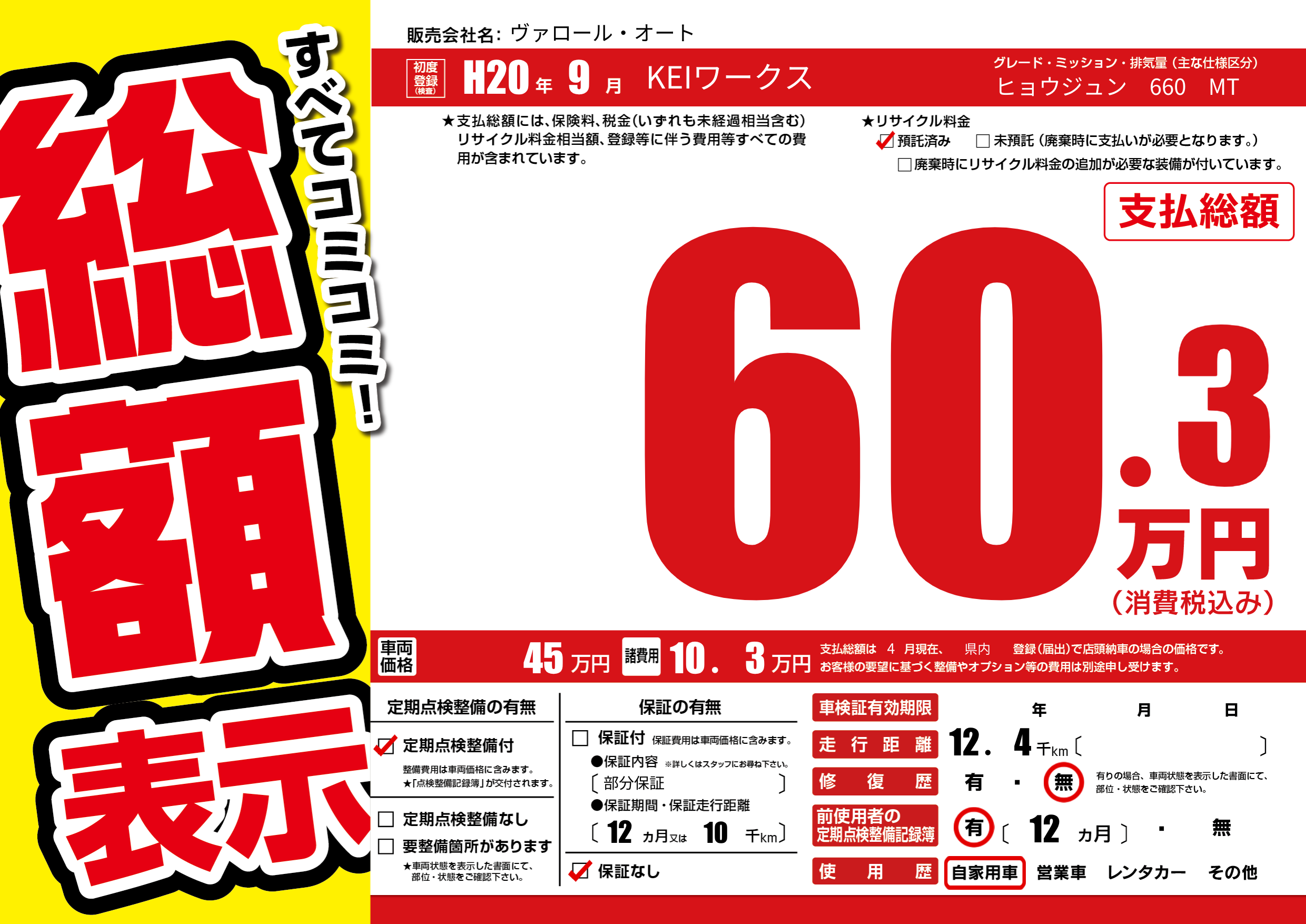 | 車名 | KEIワークス | グレード ミッション 排気量 |