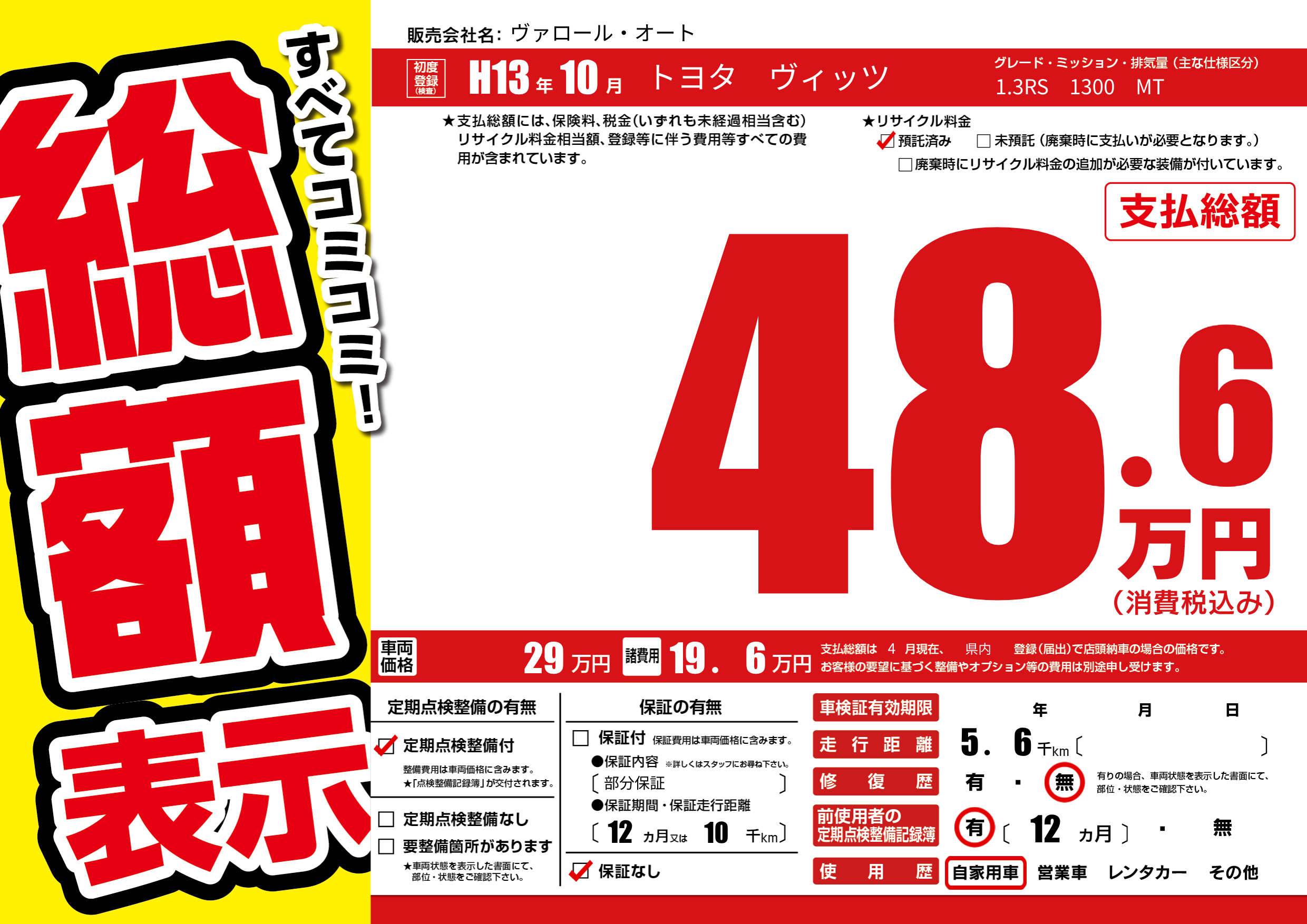 | 定期点検整備 | 定期点検整備あり | ||