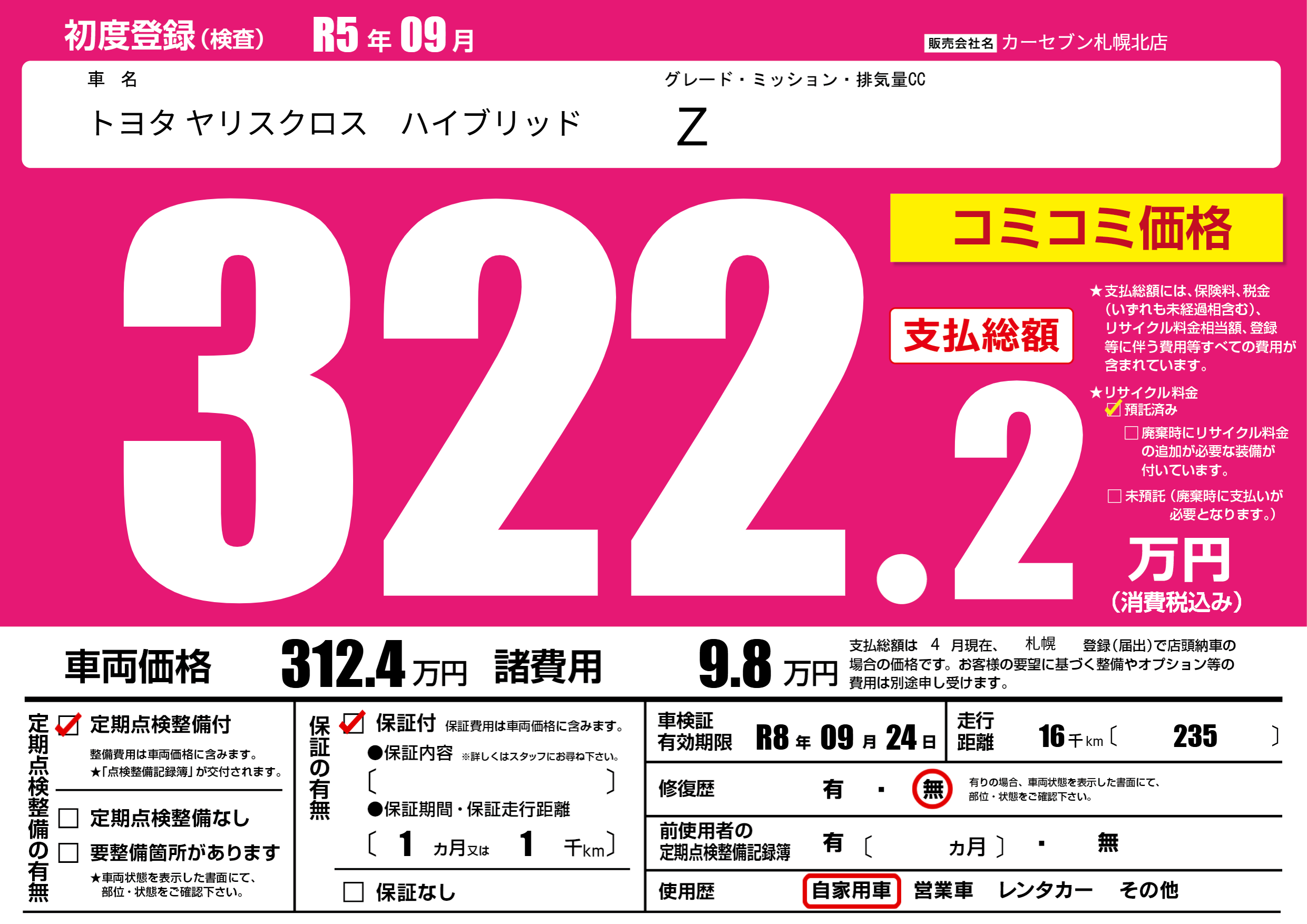 | 車検制限 | R8年 09月 24日 | ||