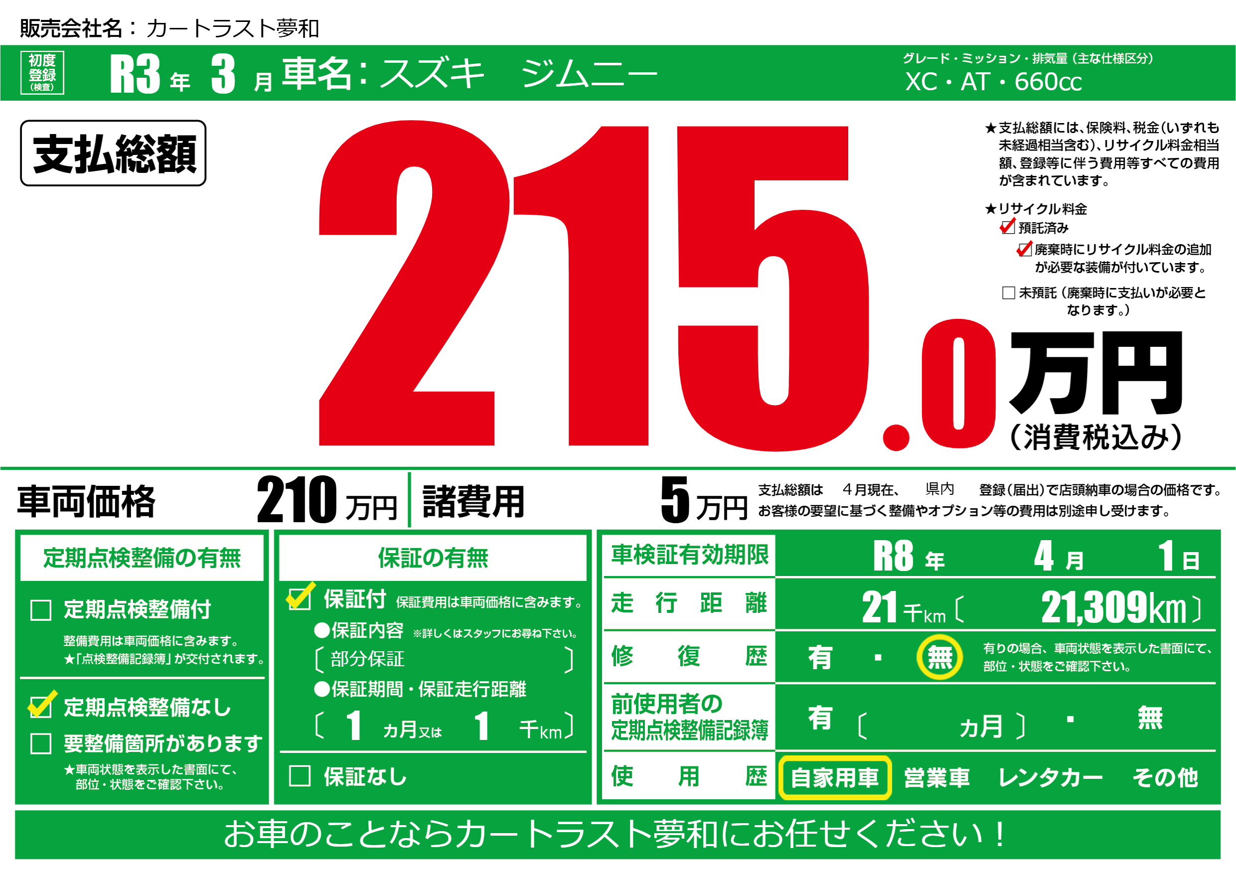 なし | 車検制限 | R8年4月1月 |