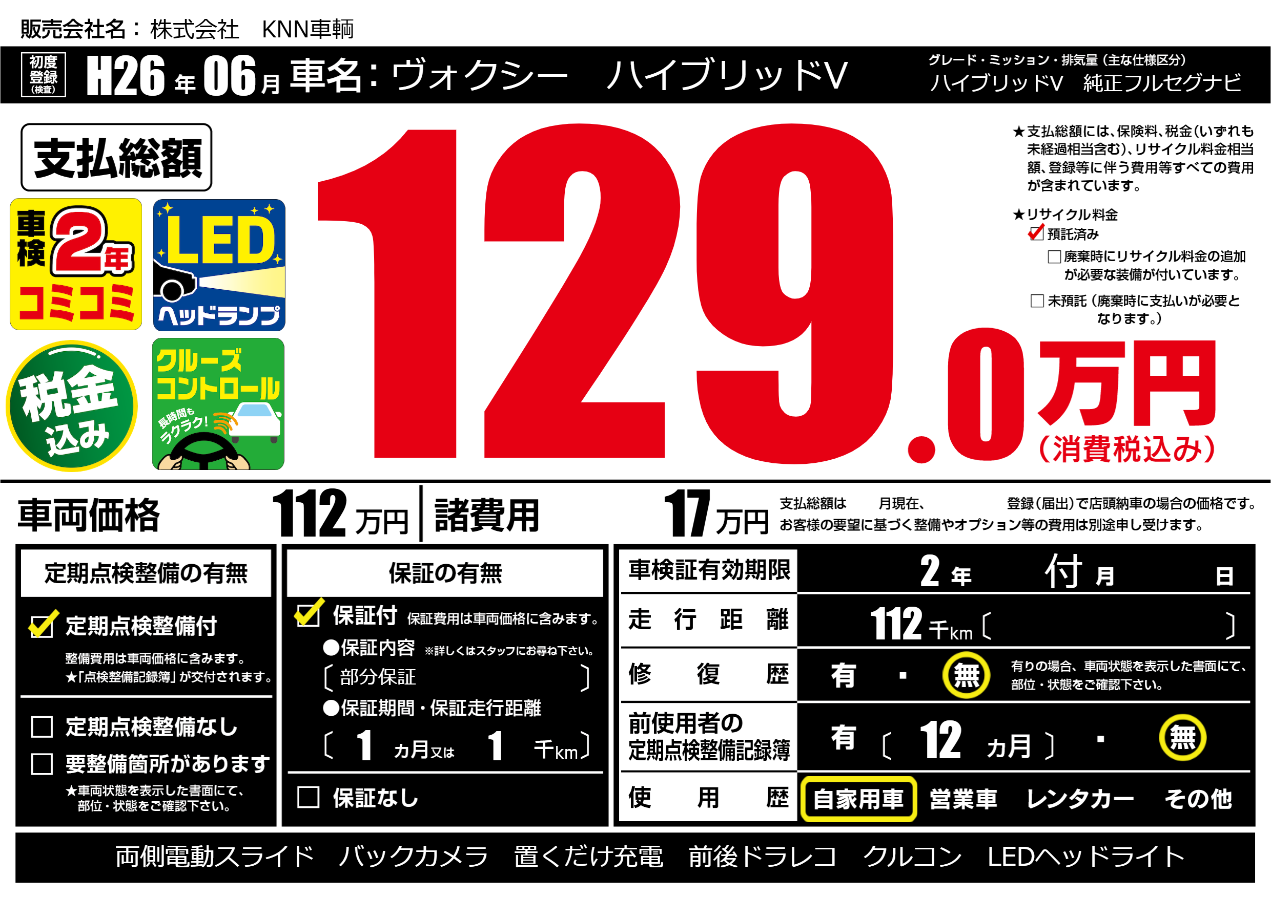 | 走行キロ | 11.2万km | 初年度登録 | H26年06月 |