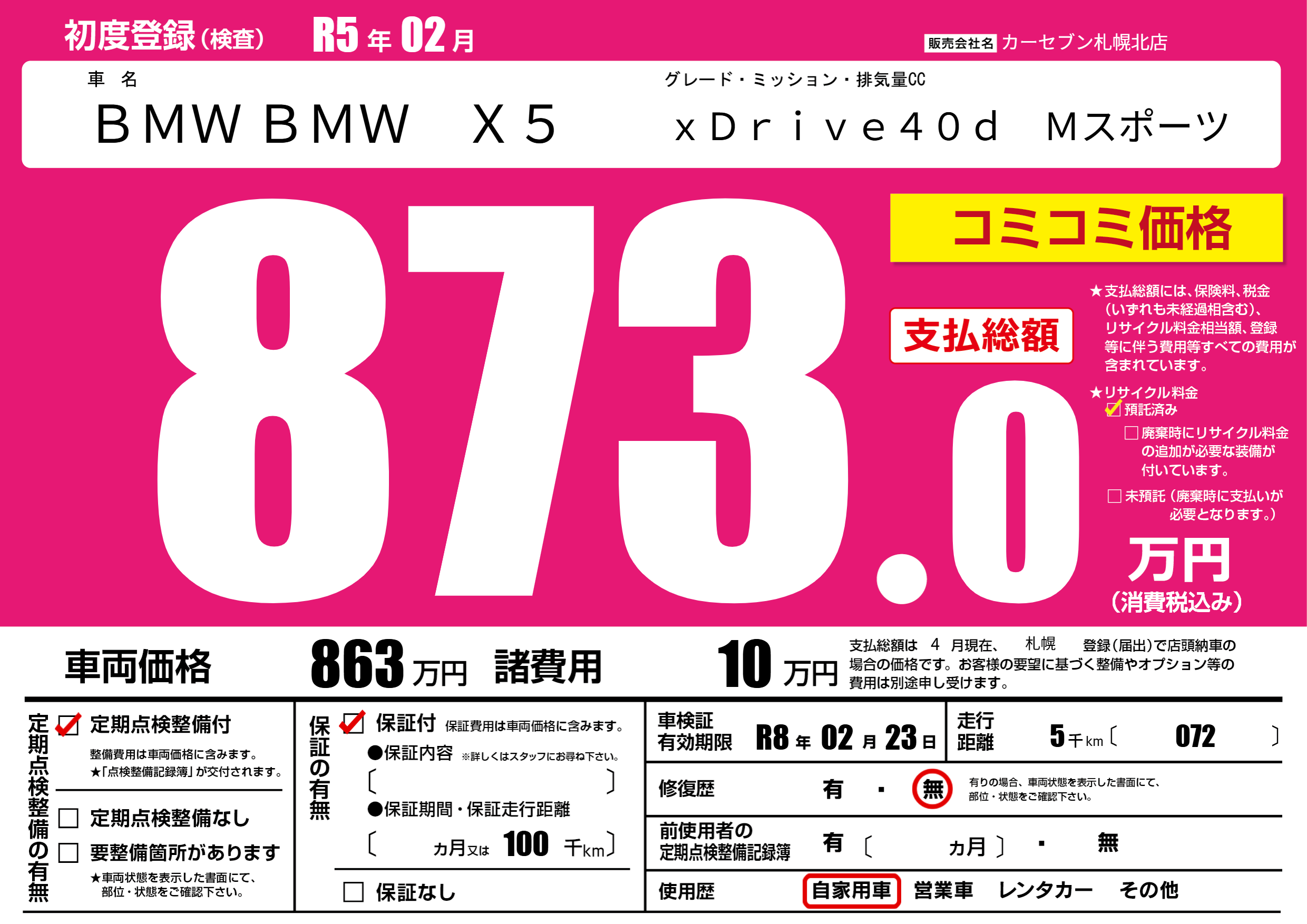 なし | 車検制限 | R8年02月23月 |