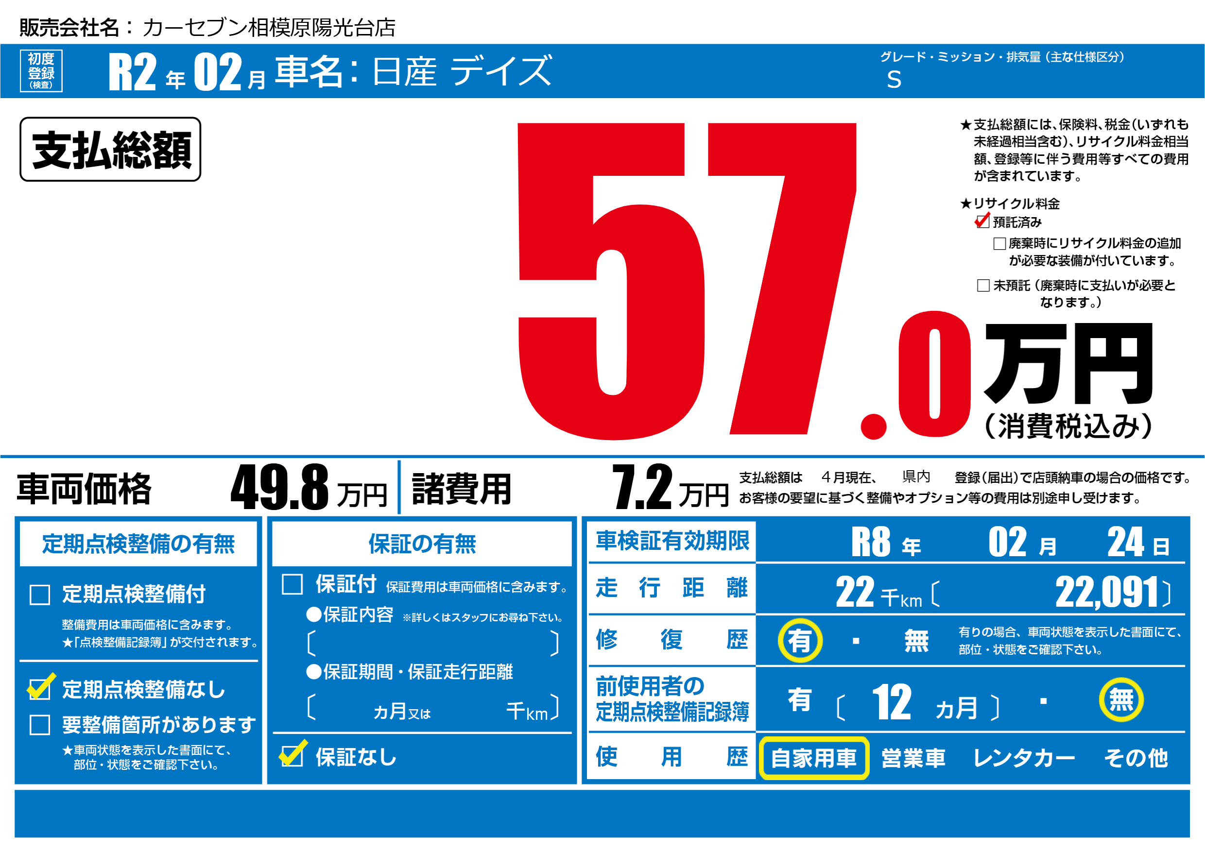 | 定期点検整備 | 定期点検整備なし | ||