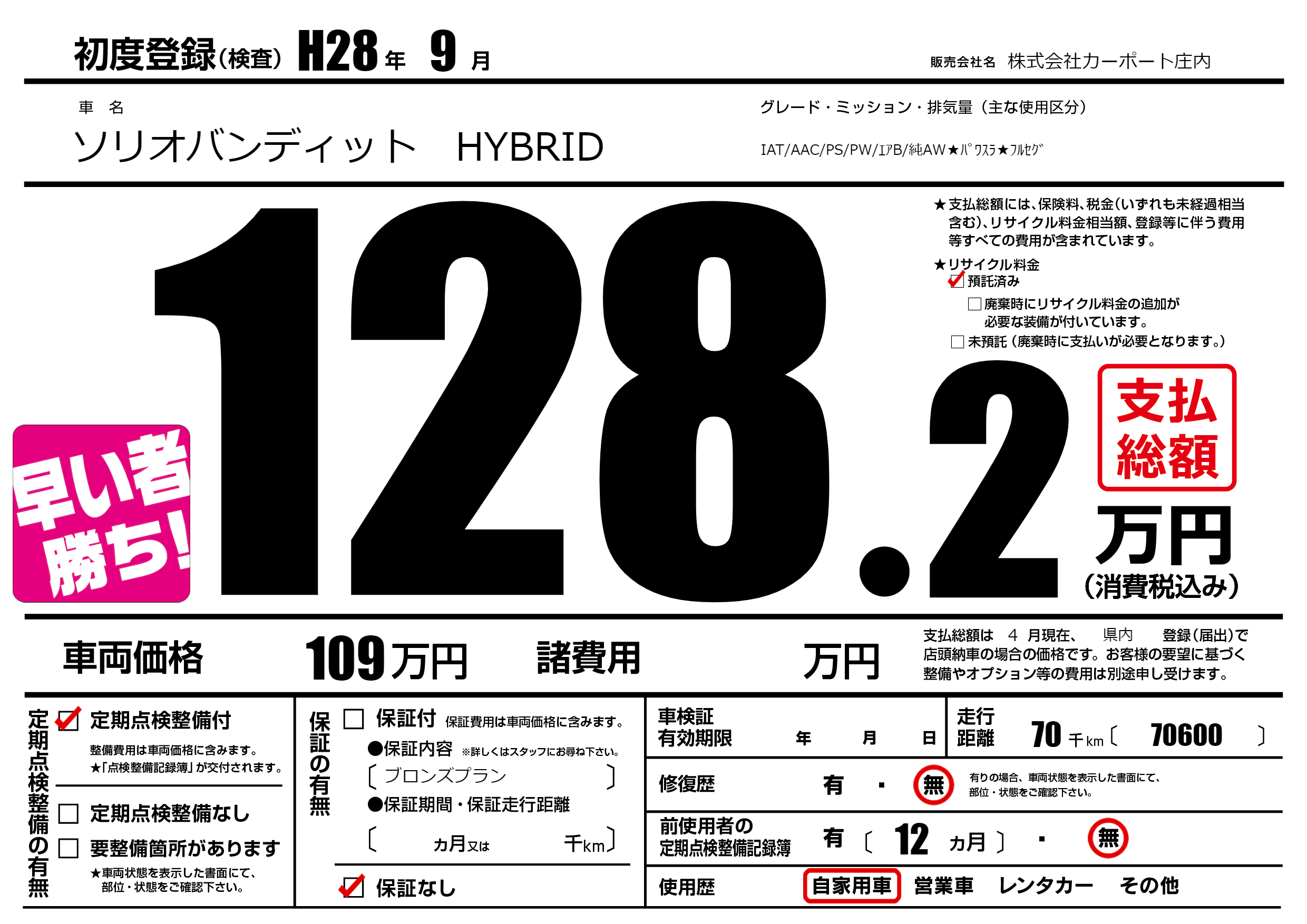 | 定期点検整備 | 定期点検整備あり | ||