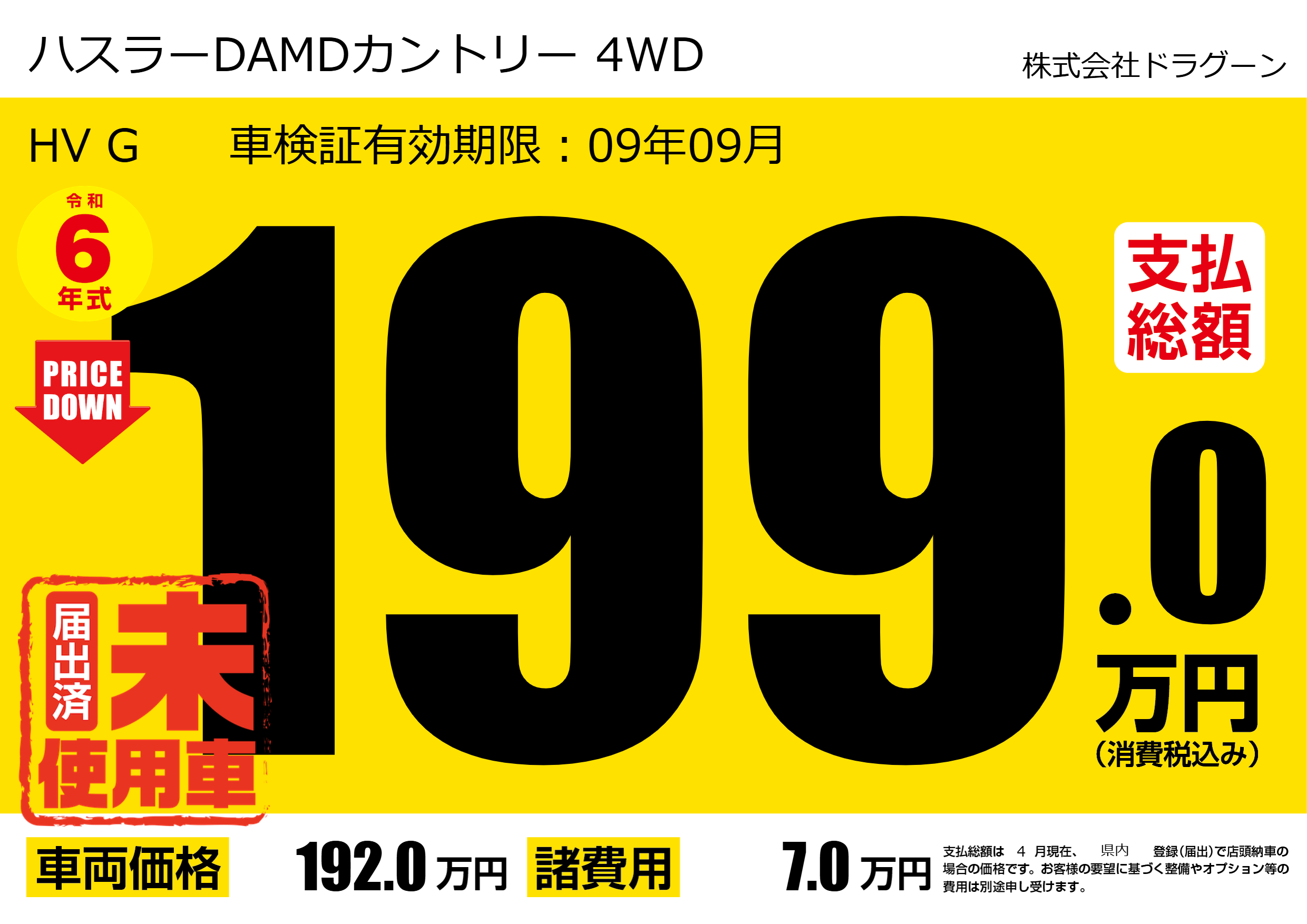 | 車名 | ハスラーDAMDカントリー 4WD | グレード ミッション 排気量 |