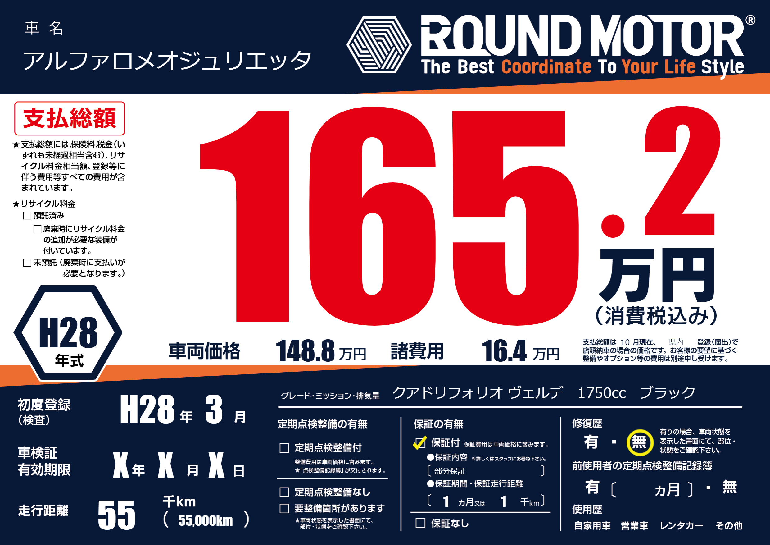 | 車名 | アルファロメオジュリエッタ | グレード ミッション 排気量 |