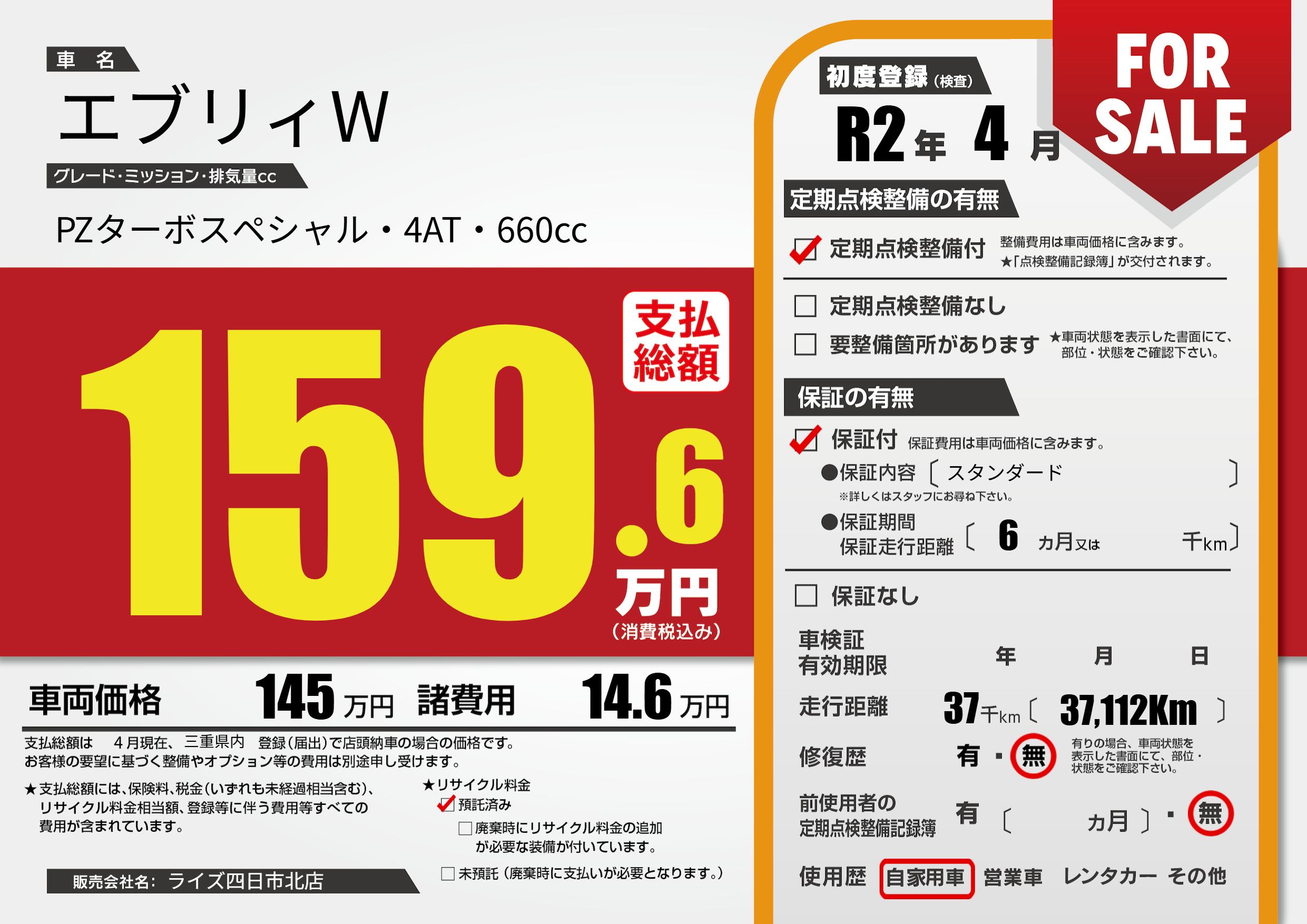 | 走行キロ | 3.7万km | ||