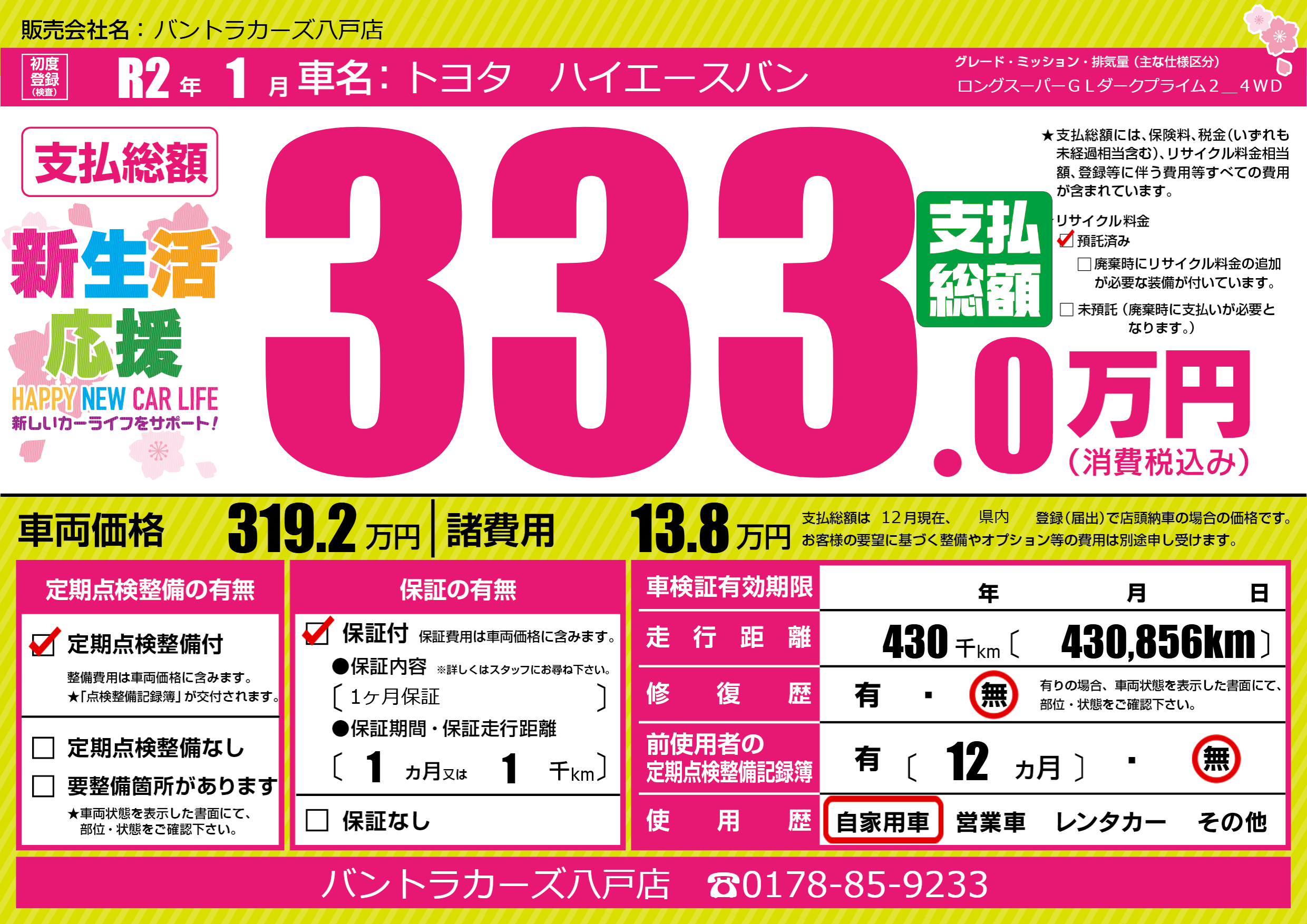 | 走行キロ | 43万km | 初年度登録 | R2年1月 |