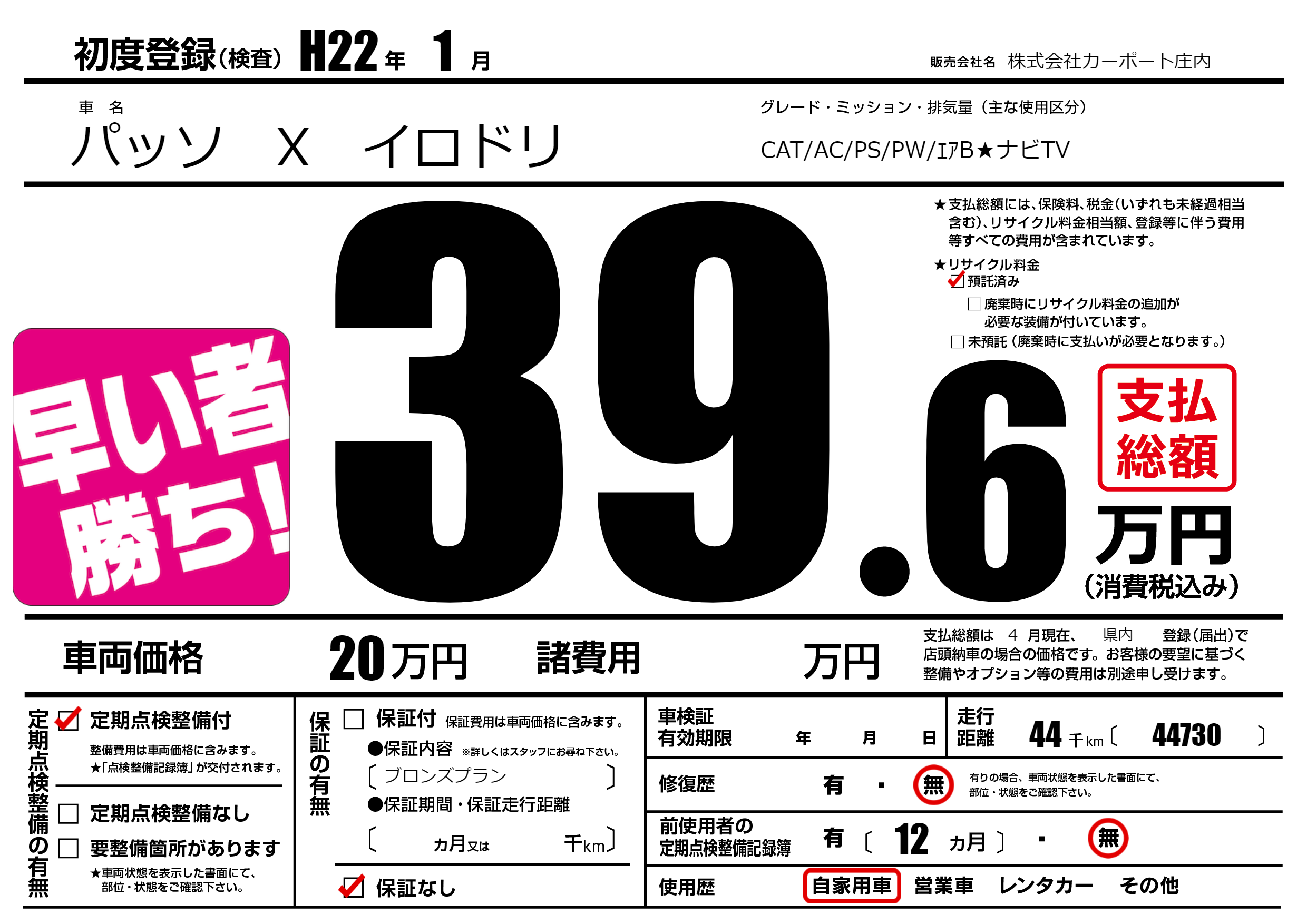 | 初年度登録 | H22年1月 | ||