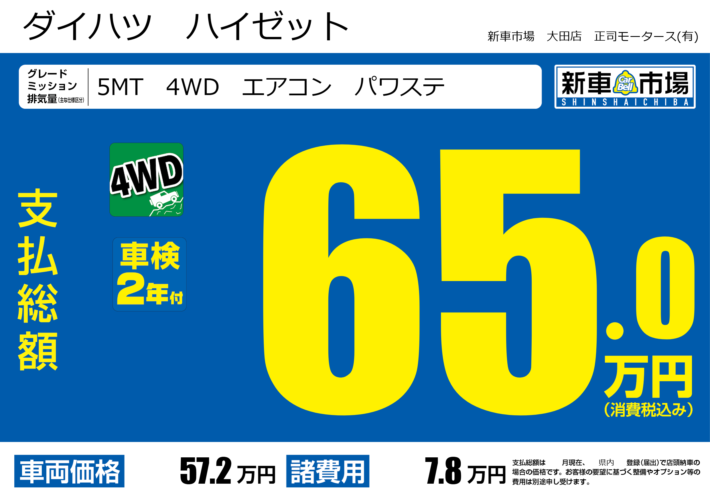 | 車名 | ダイハツ ハイゼット | グレード ミッション 排気量 |