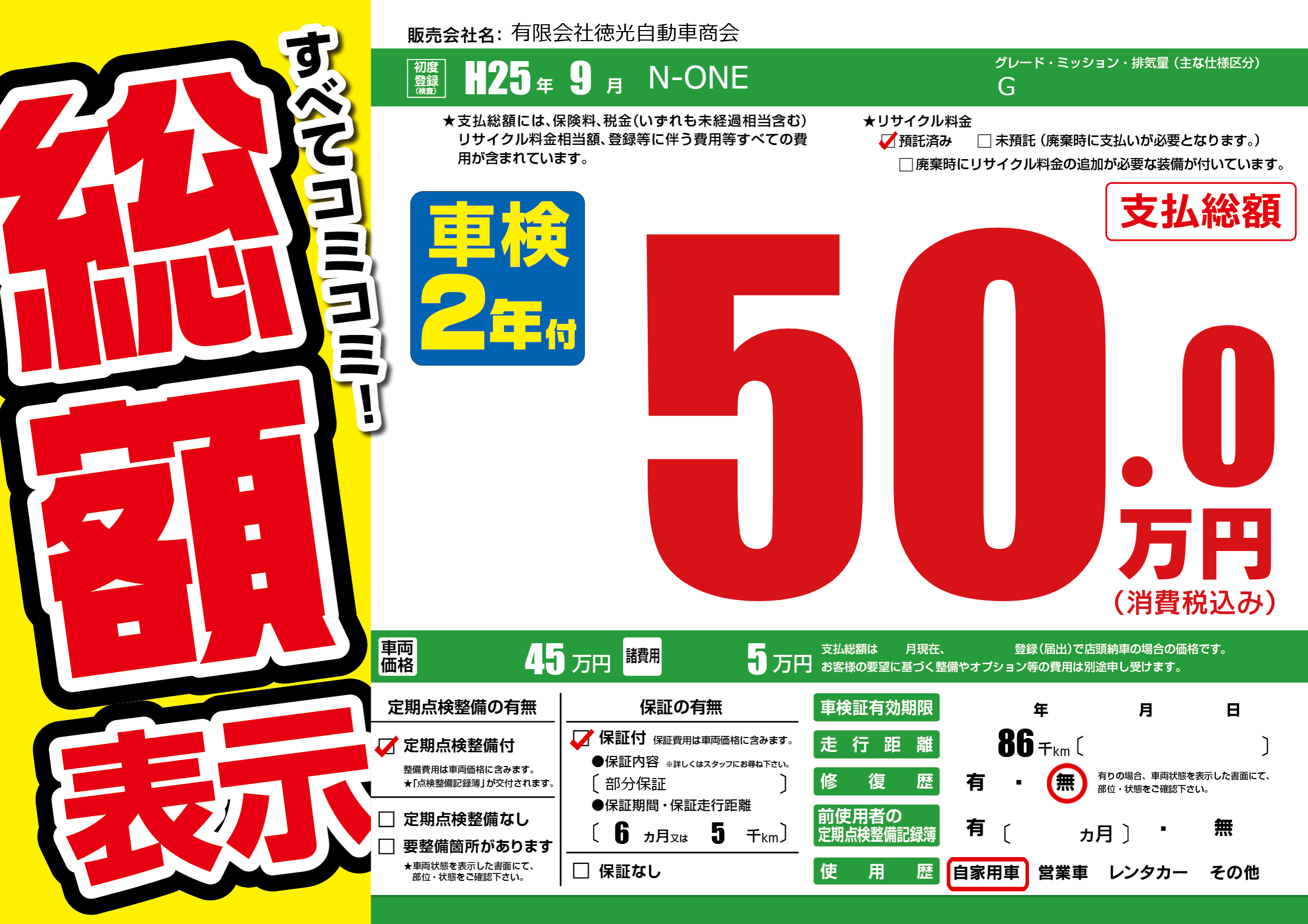 | 車名 | N-ONE | グレード ミッション 排気量 |