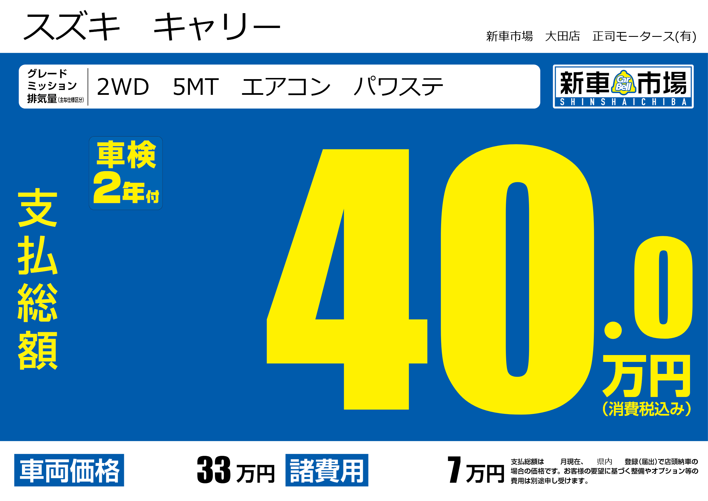 | 車名 | スズキ キャリー | グレード ミッション 排気量 |
