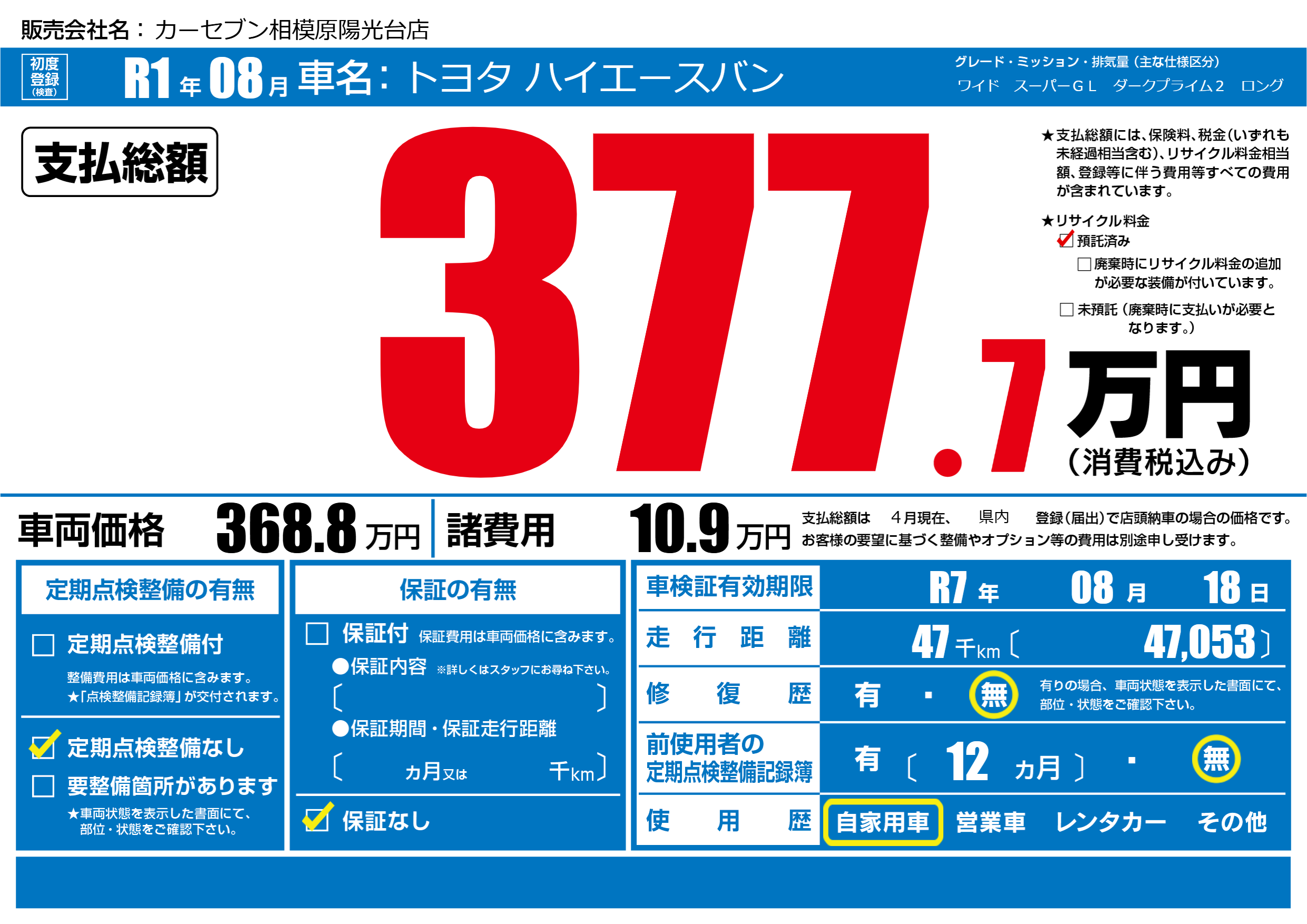なし | 車検制限 | R7年08月18月 |