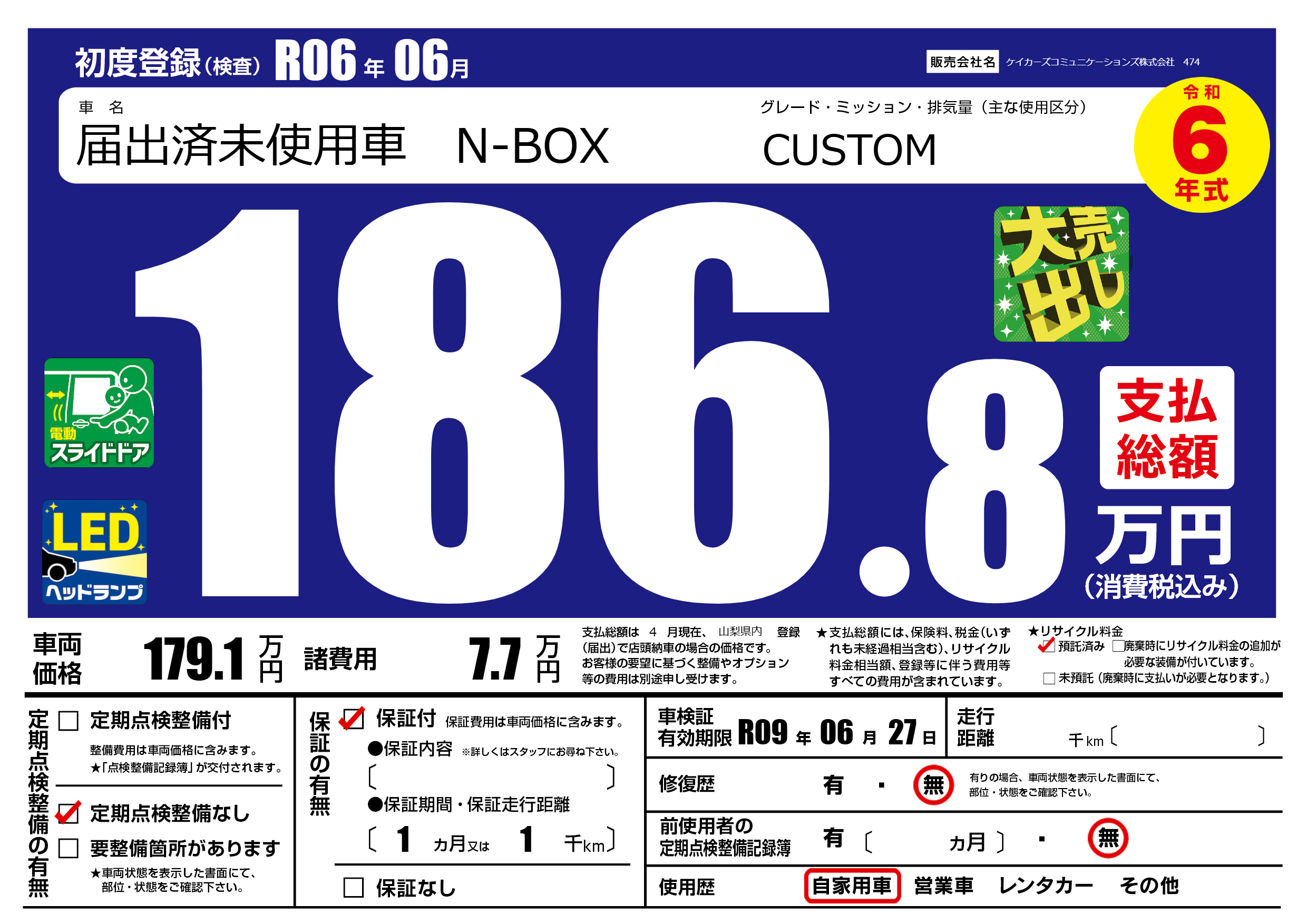 | 初年度登録 | R06年06月 | ||