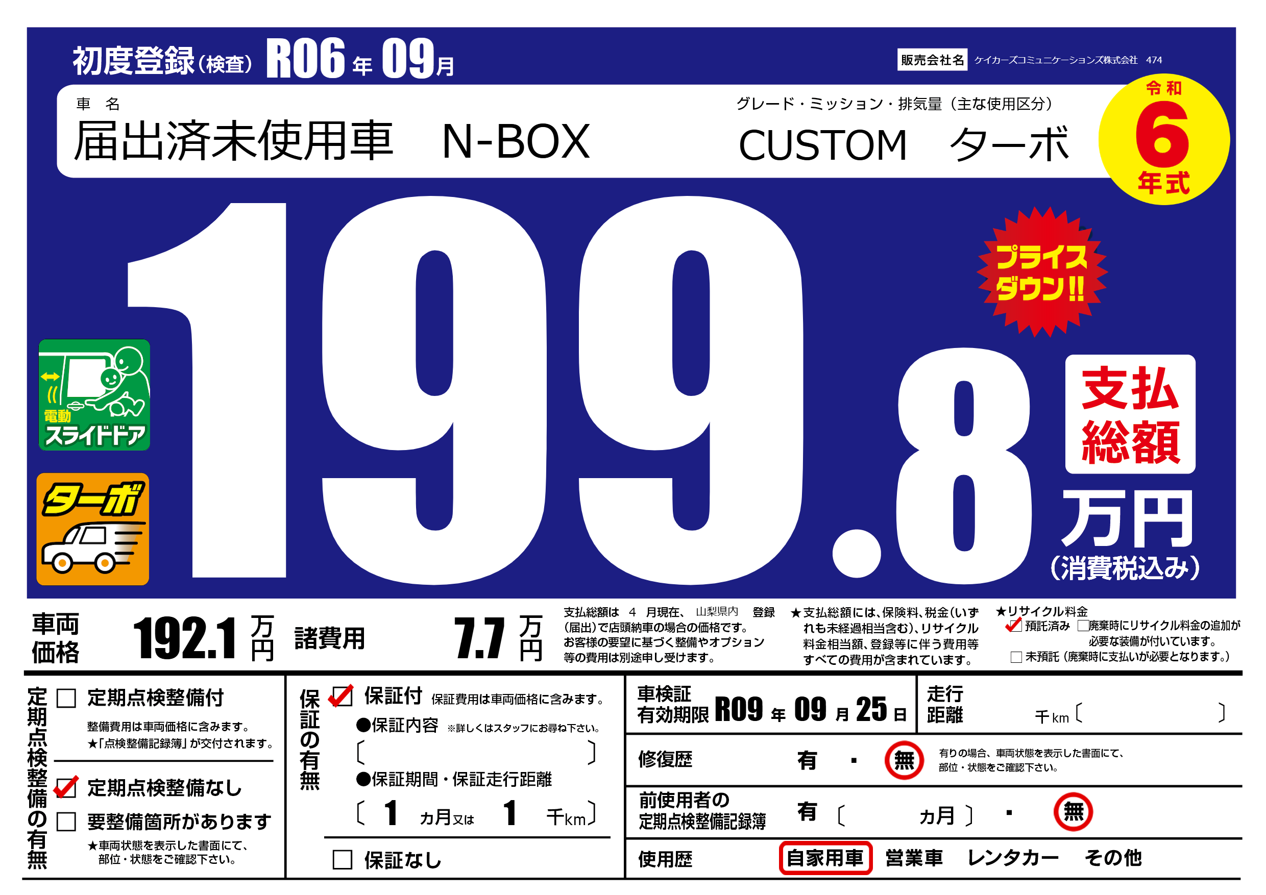 なし | 車検制限 | R09年09月25月 |