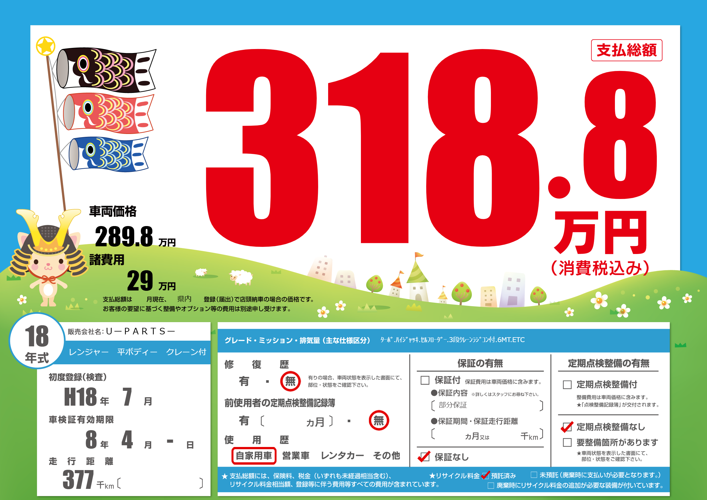 | 走行キロ | 37.7万km | 初年度登録 | H18年7月 |