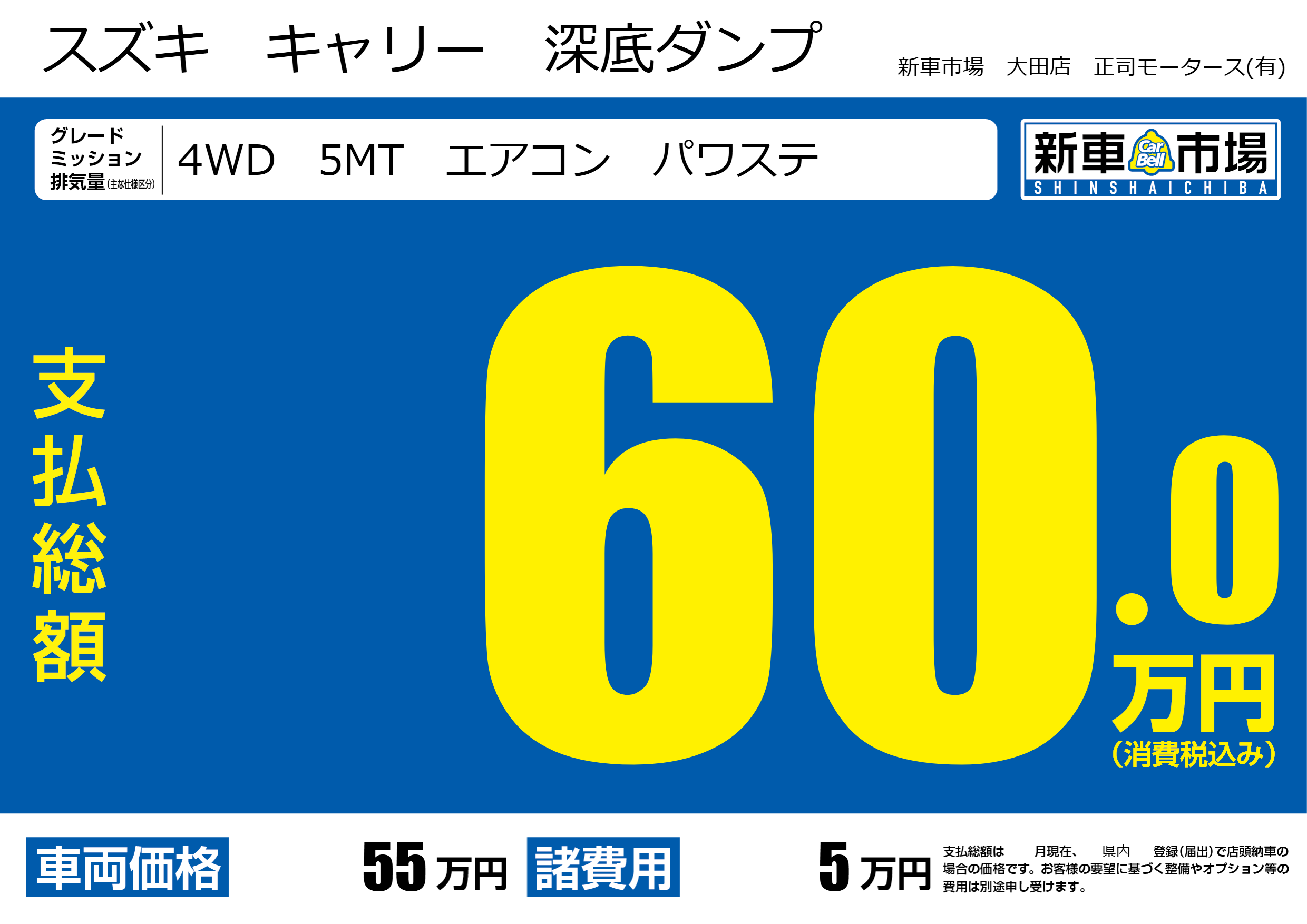 | 車名 | スズキ キャリー 深底ダンプ | グレード ミッション 排気量 |