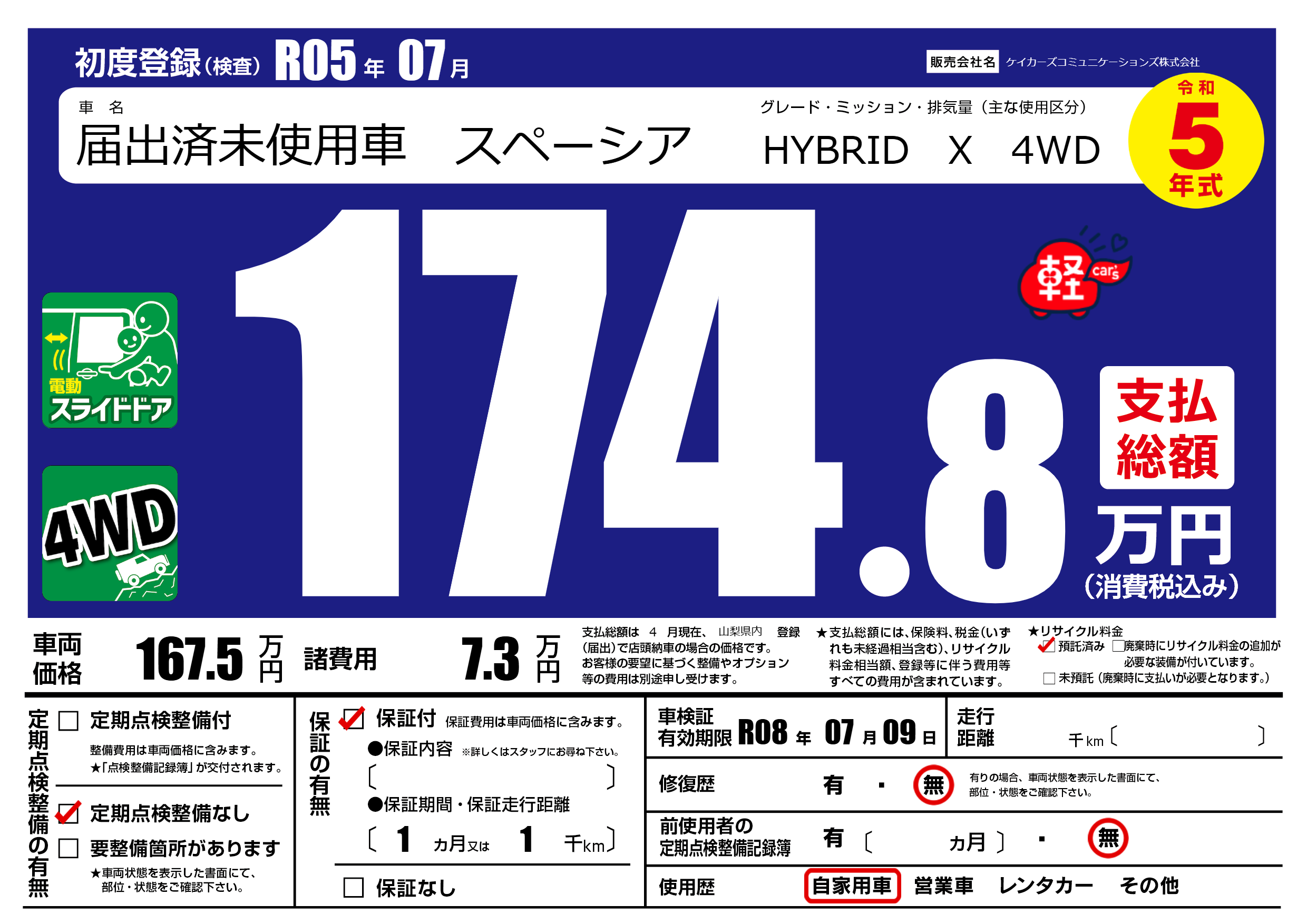 | 初年度登録 | R05年07月 | ||