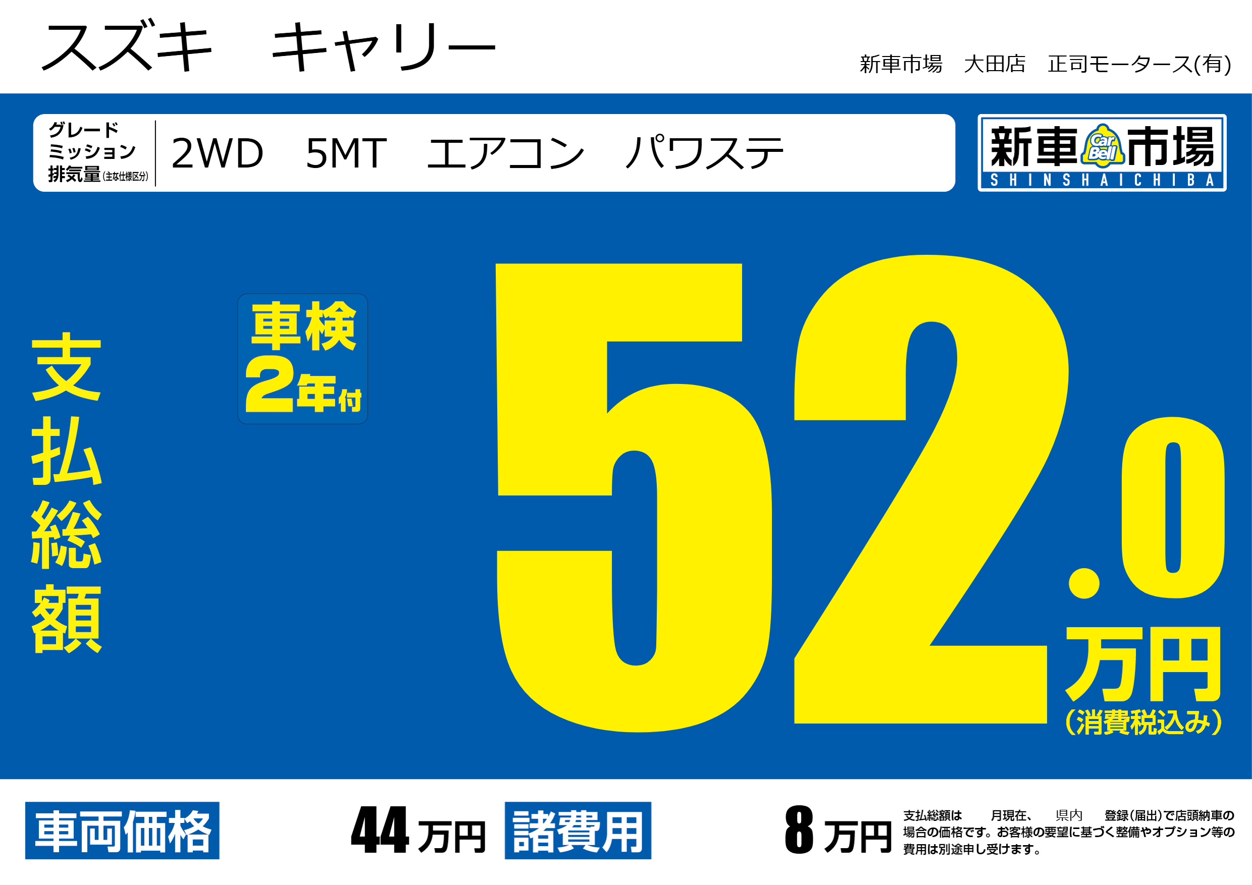 | 車名 | スズキ キャリー | グレード ミッション 排気量 |